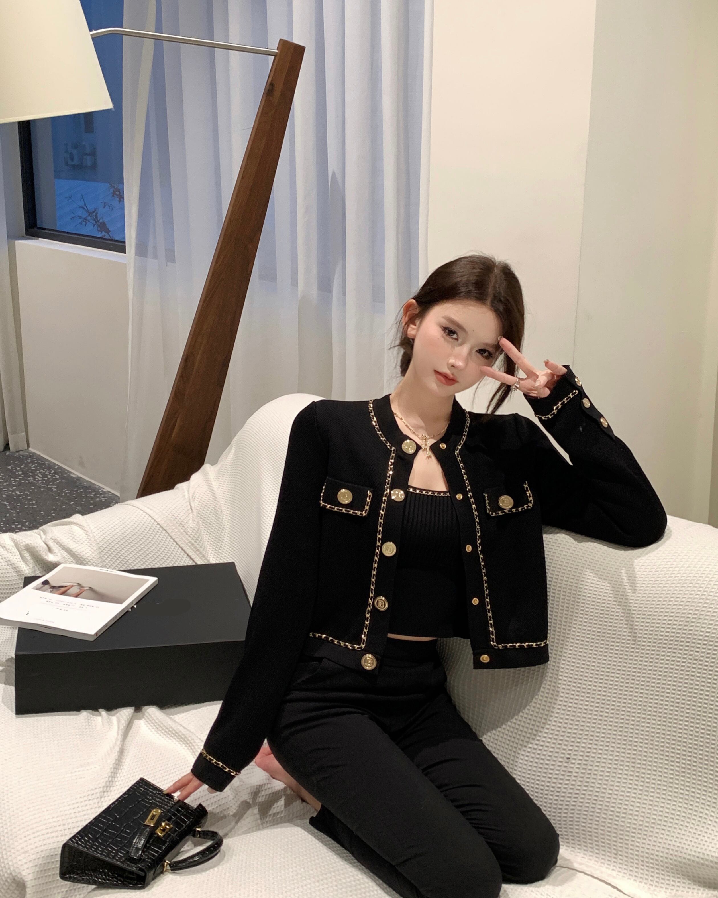 甘いホットガールスーツ秋長袖ショートコートスリムフィットサスペンダーベストトップツーピースセット服 ロング 大人ガーリー スウィート キュート カジュアル オータム 秋物