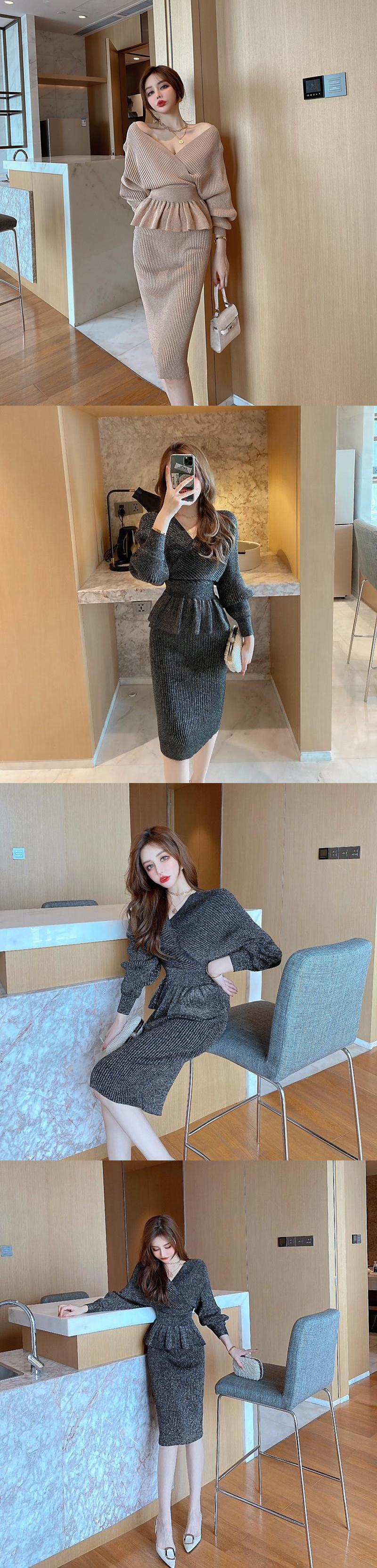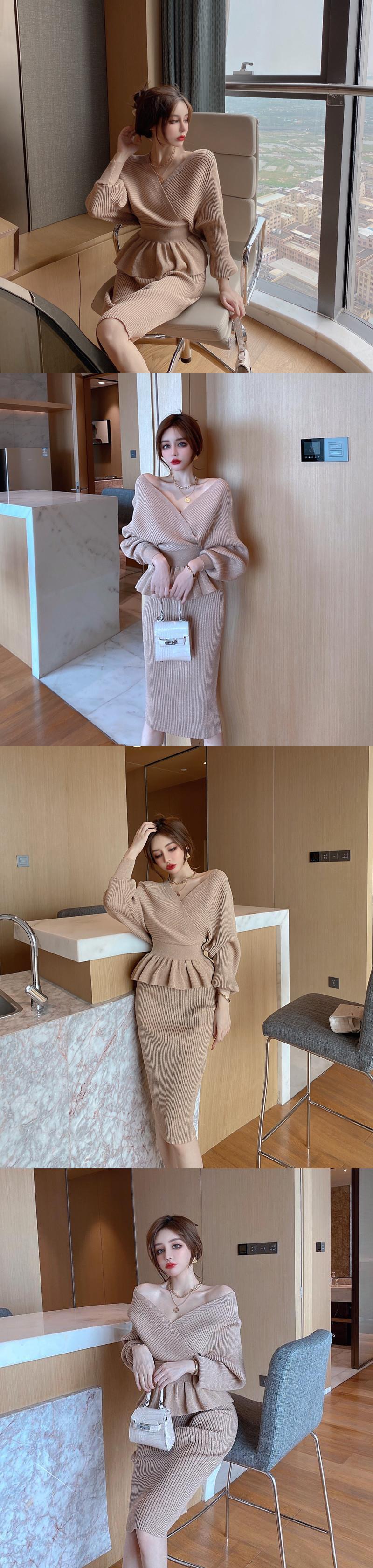 甘いホットガールスーツ春と夏セクシー V ネックセーターニットトップウエストスリムフィットスカート 2 点セット 大人ガーリー スウィート キュート カジュアル スプリング 春物 サマー 夏物 Vネック