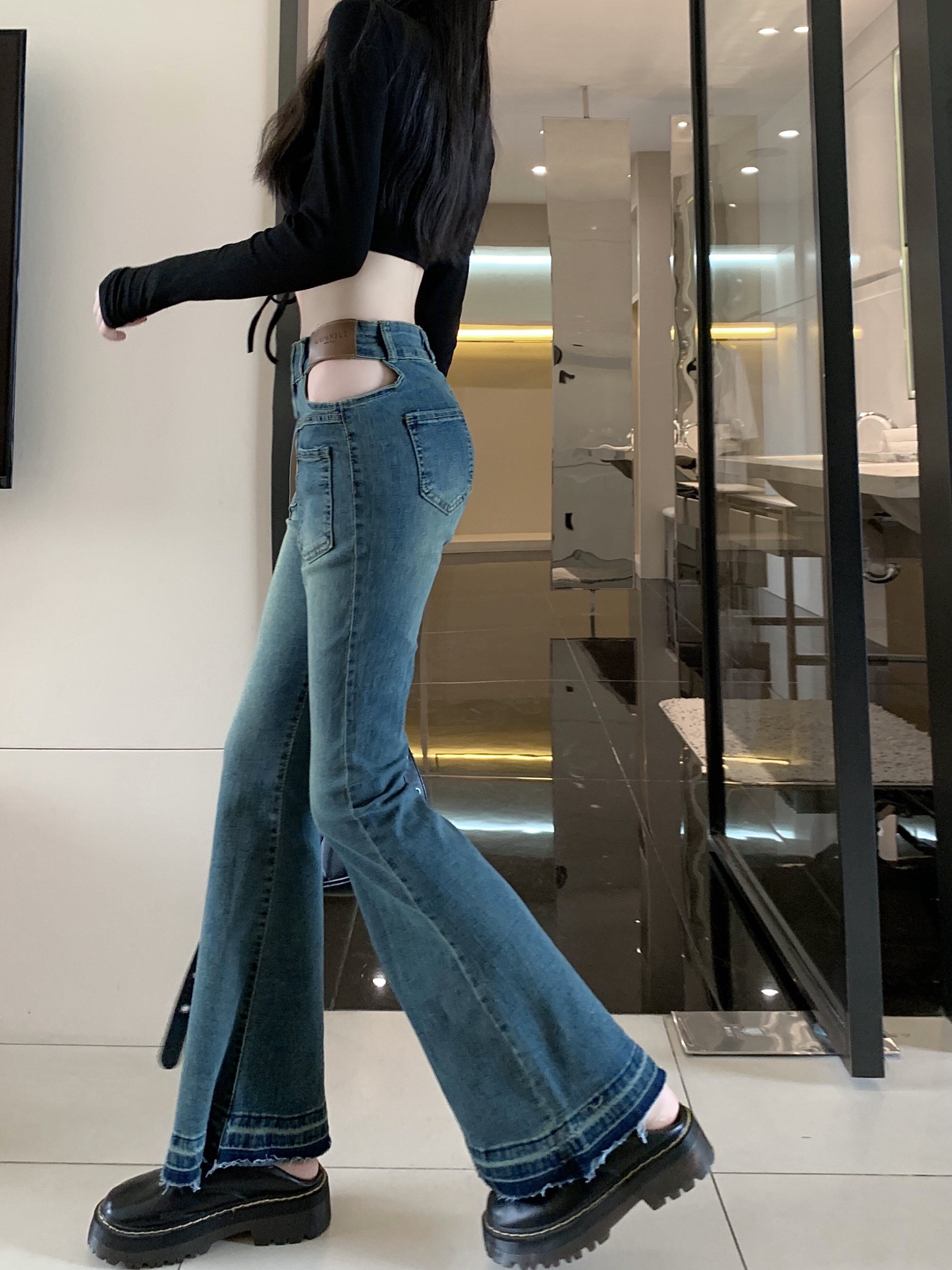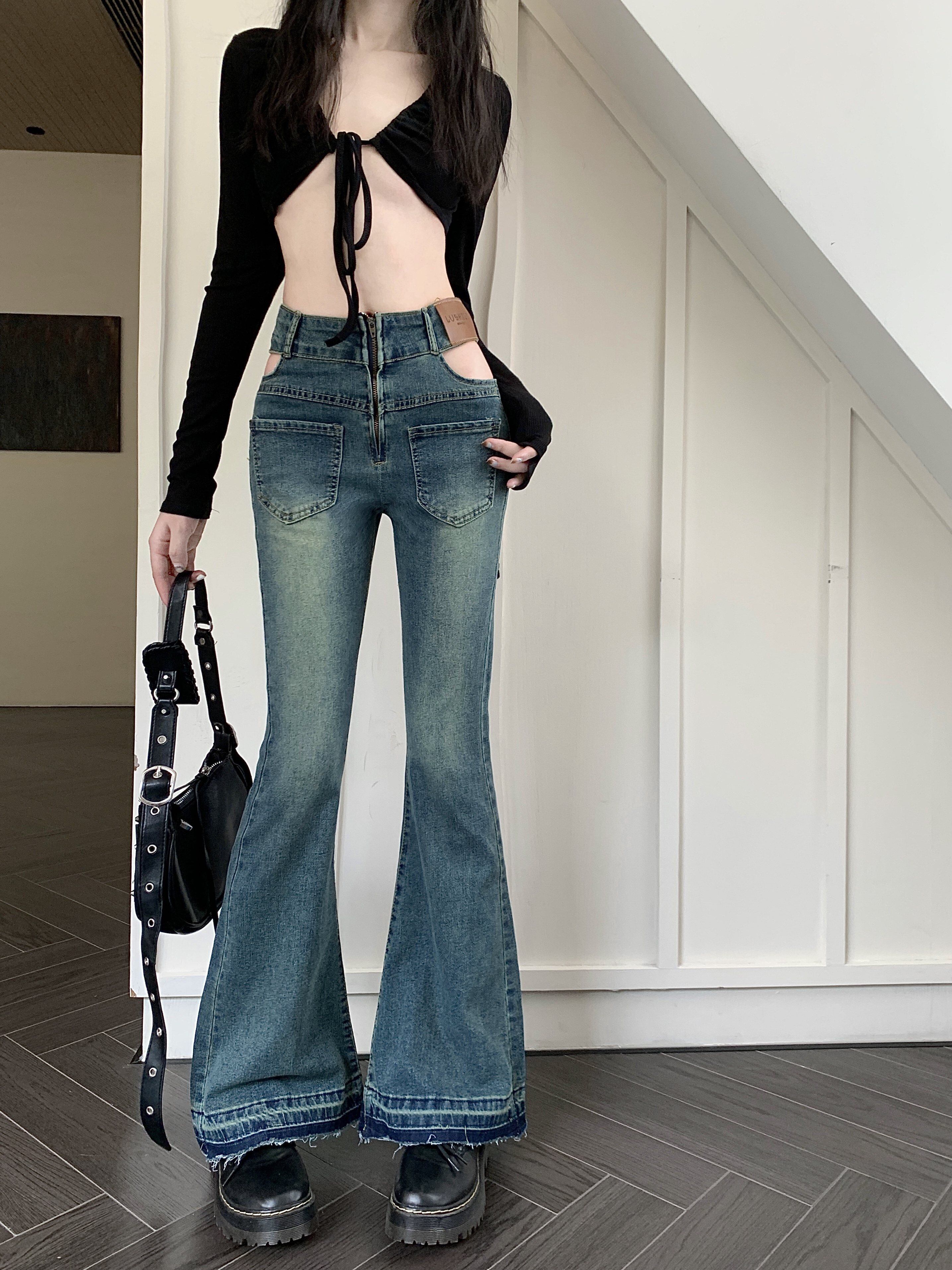 レトロスパイシーガールマイクロラジーンズレディースウエスト感覚秋パンツストレッチスリムジーンズ オータム 秋物