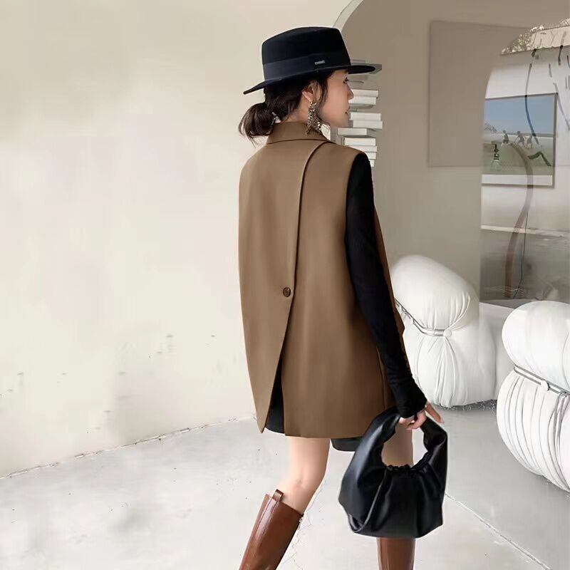 オフィスレディルーズ 2 ボタンベスト春と秋ターンダウンカラーアウタースーツベストジャケット服 スプリング 春物 オータム 秋物 会社 学校 通勤や通学にも