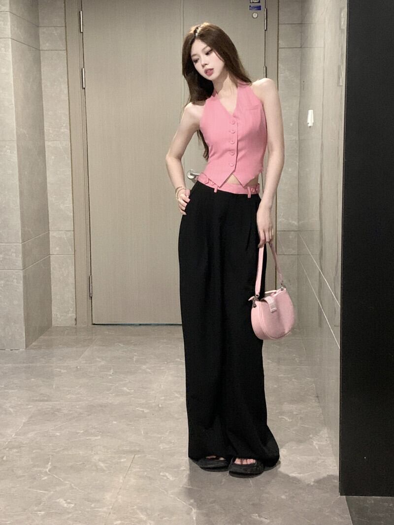 スイートホットガールスーツ夏ノースリーブホルターネックタンクトップウエストパンツストレートチューブズボンツーピースセット 大人ガーリー スウィート キュート カジュアル サマー 夏物