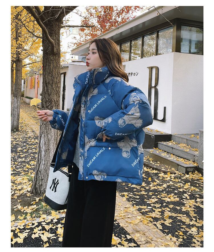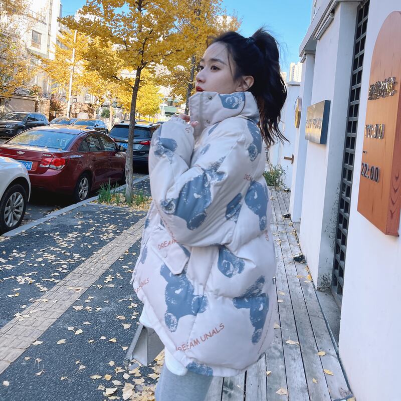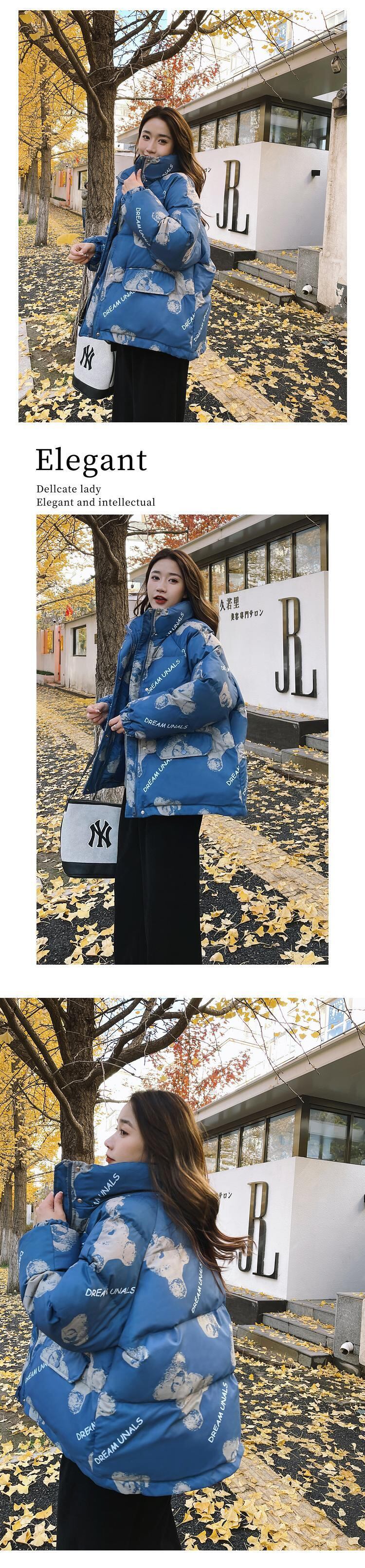 スタイルダウンコットンジャケット冬長袖スタンドカラーリトルベアプリントコットンジャケット服 ロング ウィンター 冬物
