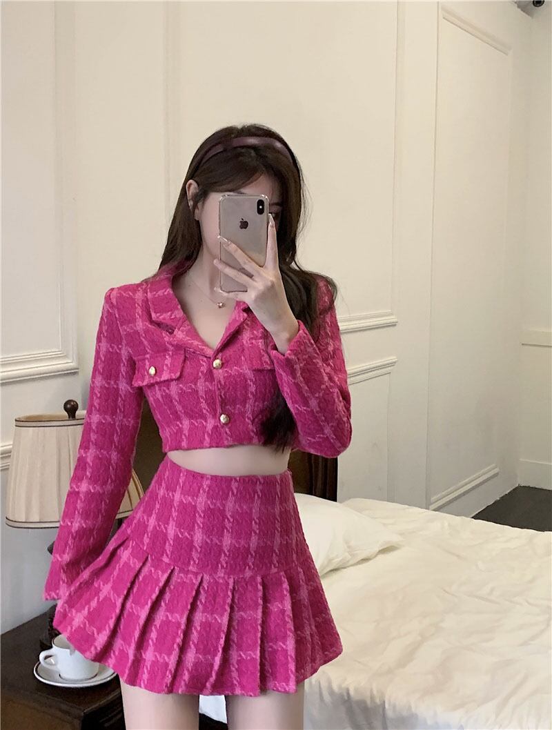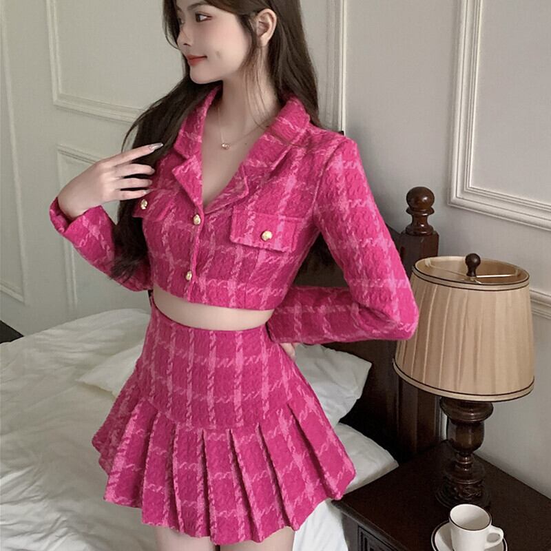 Sweet Girl スーツ レディース 春と秋長袖ショートコート ウエストプリーツスカート 2点セット服 ロング 大人ガーリー スウィート キュート カジュアル スプリング 春物 オータム 秋物
