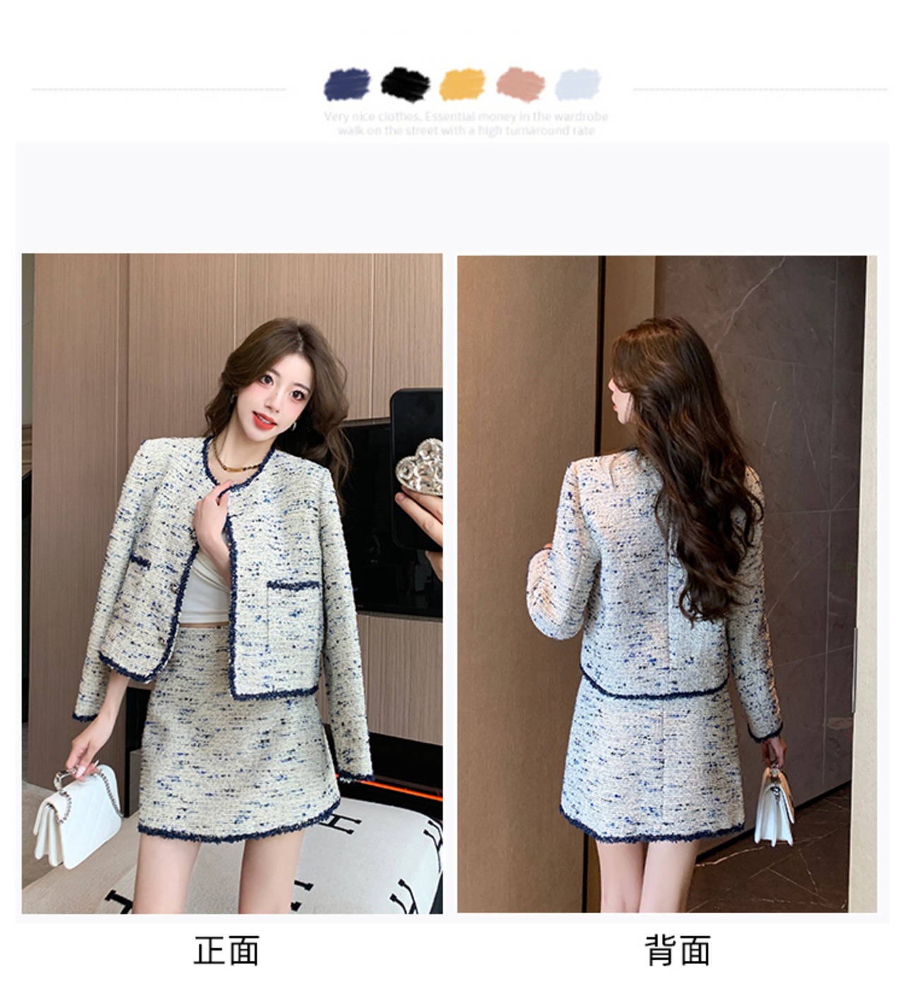 OL スーツ レディース 秋 ツイード 長袖 コート ウエスト ミニスカート 2点セット 服 ロング オータム 秋物 会社 学校 通勤や通学にも