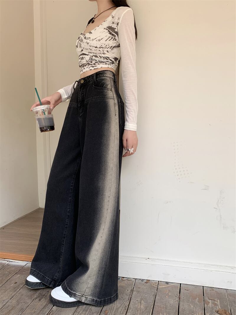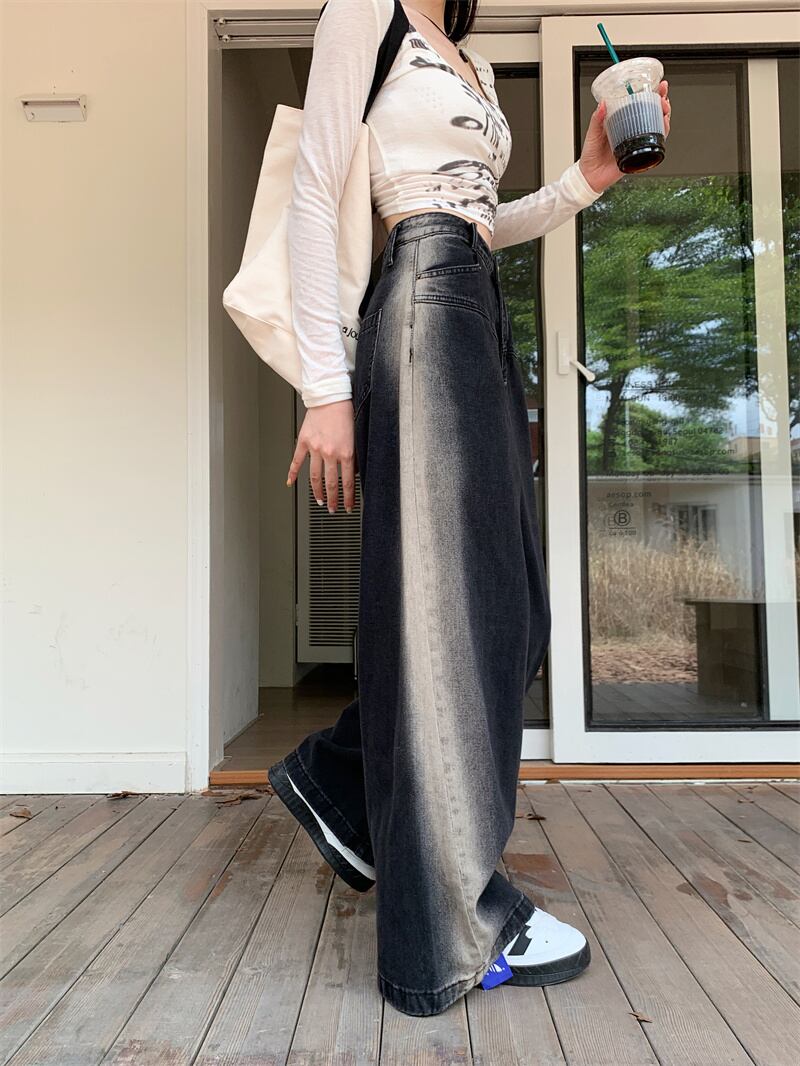 アメリカン ワイドレッグ ウエスト ジーンズ レディース 秋ジーンズ ルーズでスリム多用途パンツ オータム 秋物 ワイドパンツ