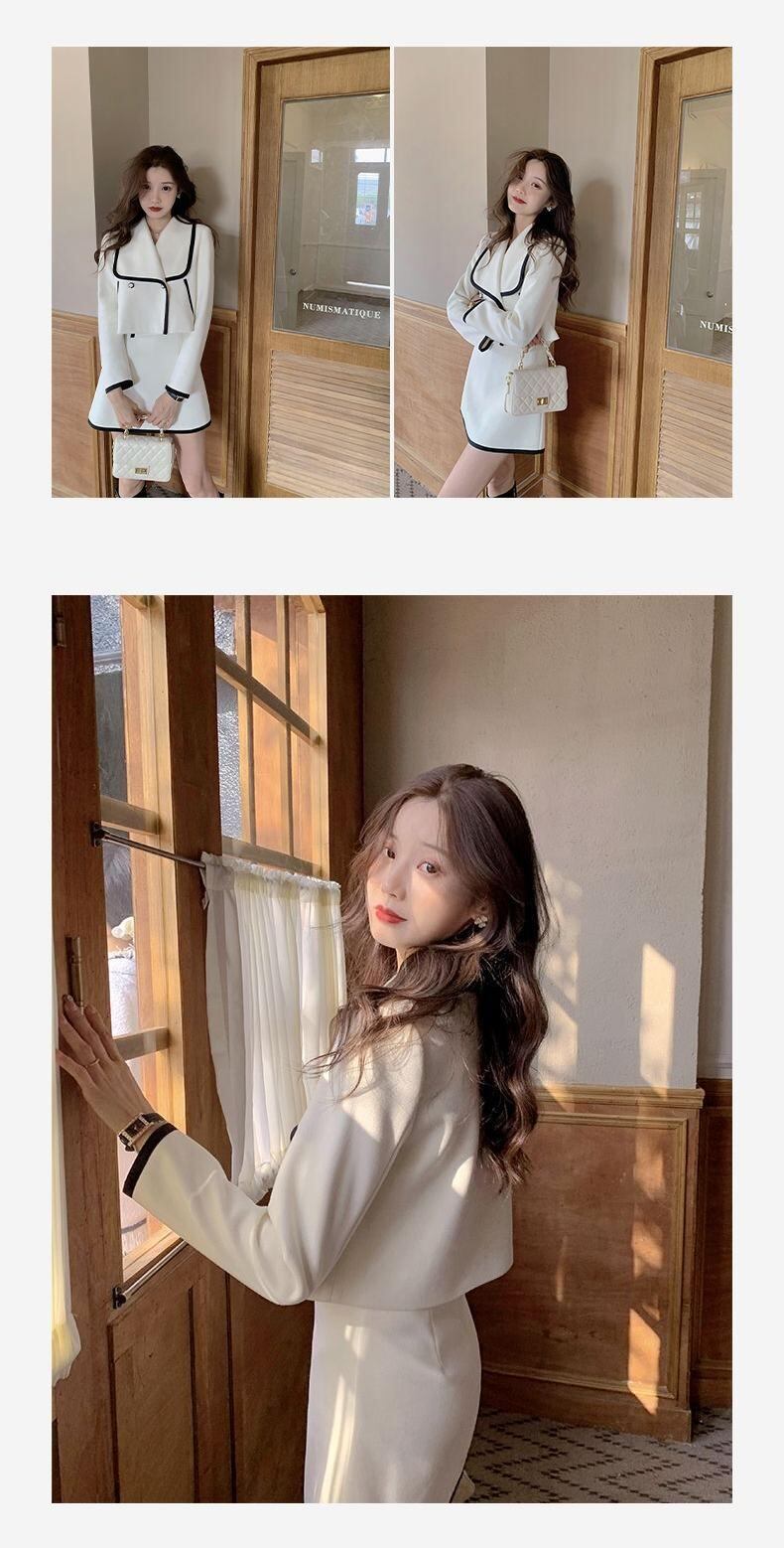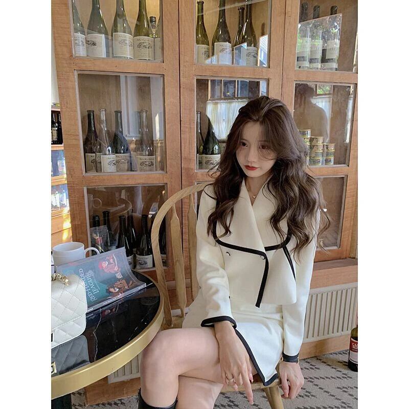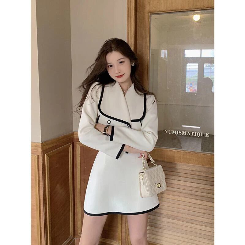 甘いホットガールスーツ秋長袖ターンダウン襟ショートコートウエストミニスカート 2 点セット服 ロング 大人ガーリー スウィート キュート カジュアル オータム 秋物