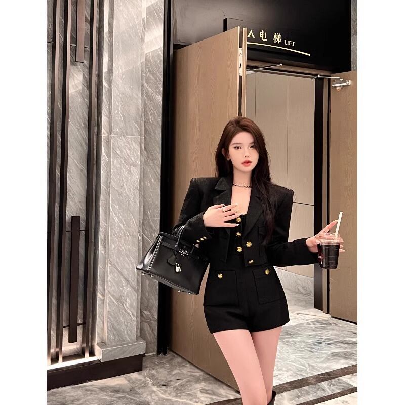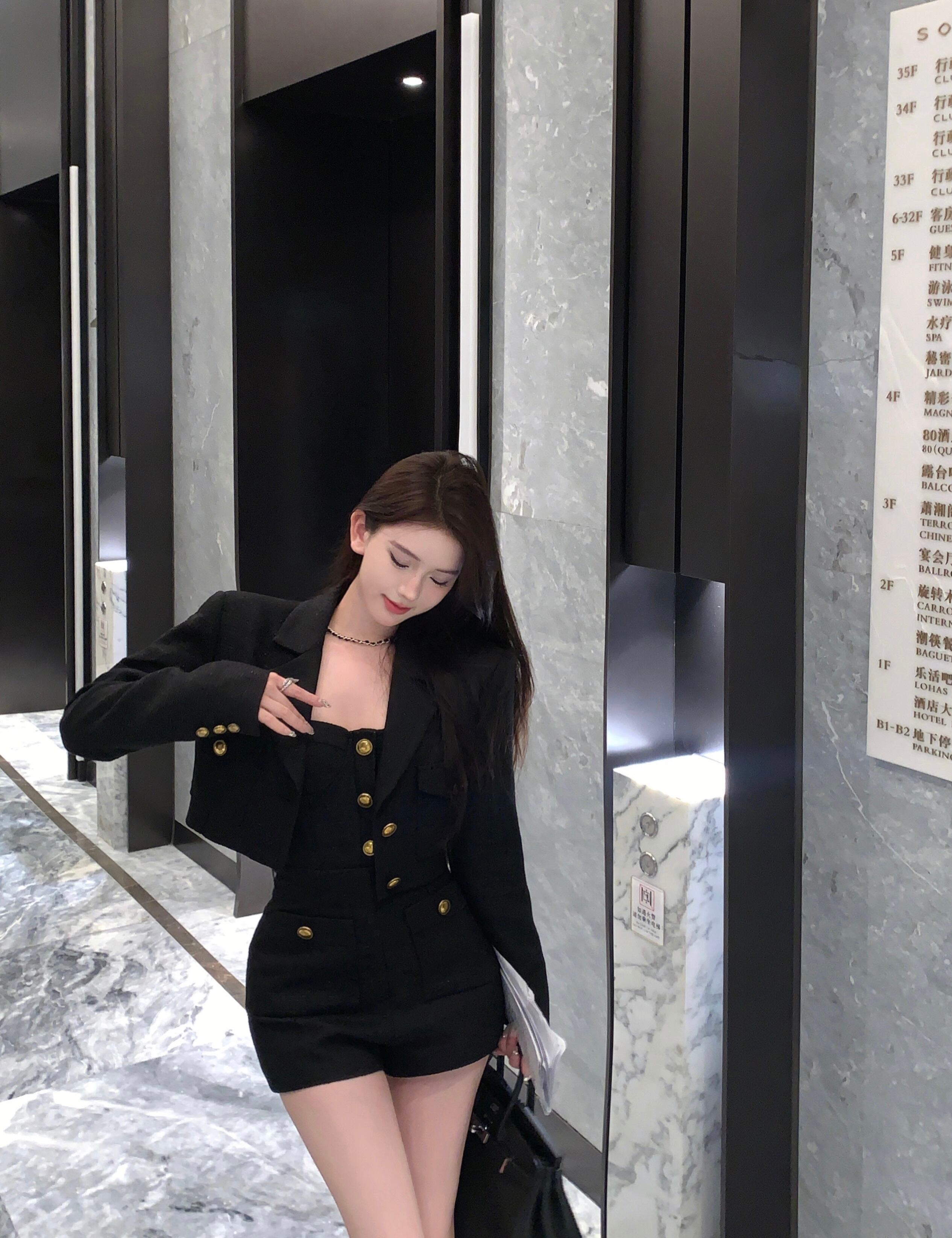 フランスオフィスレディ通勤スーツ秋ツイード長袖コートストラップレスジャンプスーツ 2 点セット服 ロング オータム 秋物 会社 学校 通勤や通学にも