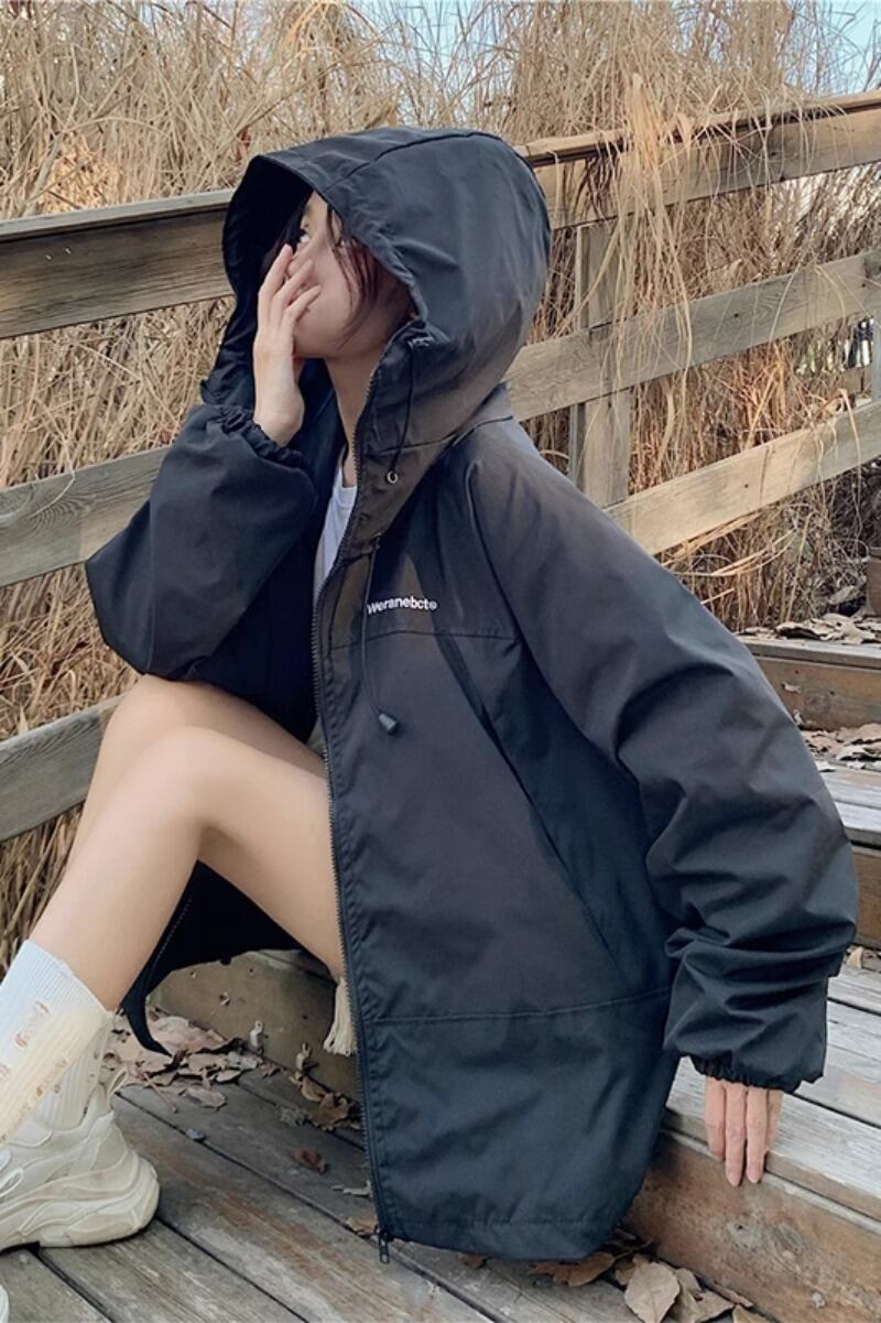 甘いホットガールフード付きジャケット秋長袖ジッパー立ち襟ルーズジャケット服 ロング レッド 大人ガーリー スウィート キュート カジュアル オータム 秋物