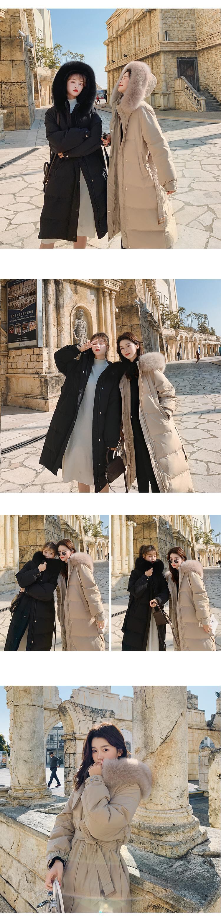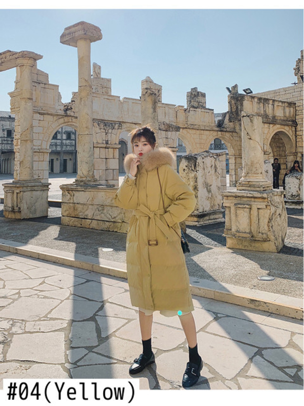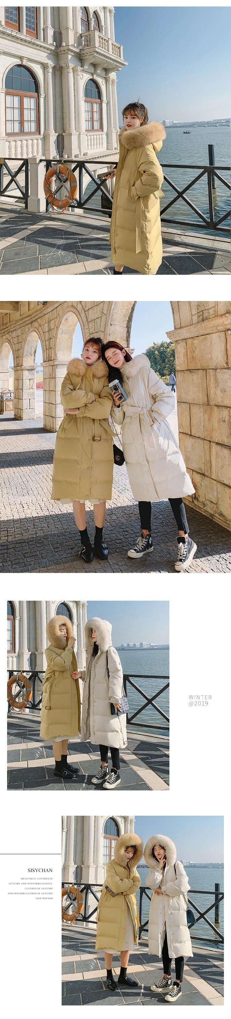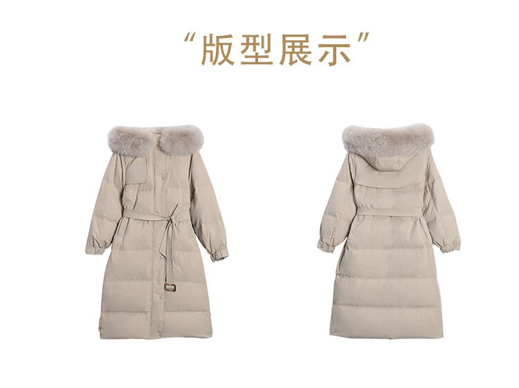 オフィスレディホワイトダックダウン肥厚ジャケット冬長袖フード付きミッドレングスダウンコート服 ロング ウィンター 冬物 会社 学校 通勤や通学にも