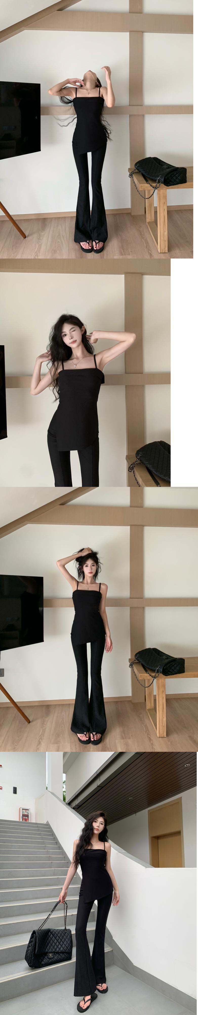 スパイシーガール ソリッドカラー タンクトップ スリム スリム スリム サスペンダー タンクトップ レディース 夏 ウエスト フレア パンツ 2 点セット サマー 夏物