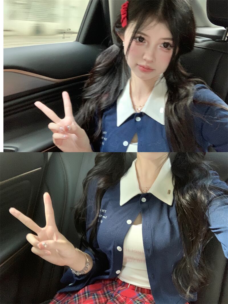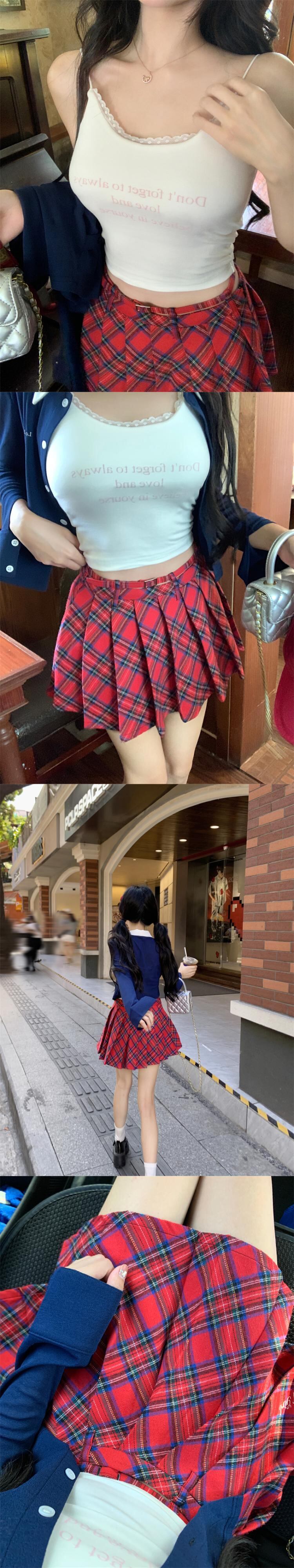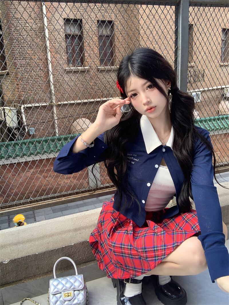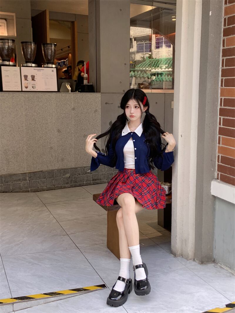 アメリカンプレッピースタイルスーツ夏長袖カーディガンキャミソールチェック柄プリーツミニスカート 3 点セット服 ロング サマー 夏物