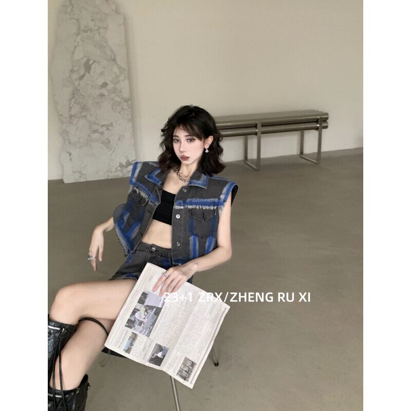 甘いホットガールズセクシースーツ夏ルーズデニムショートトップウエスト A ラインミニスカート 2 点セット服 大人ガーリー スウィート キュート カジュアル サマー 夏物 Aライン