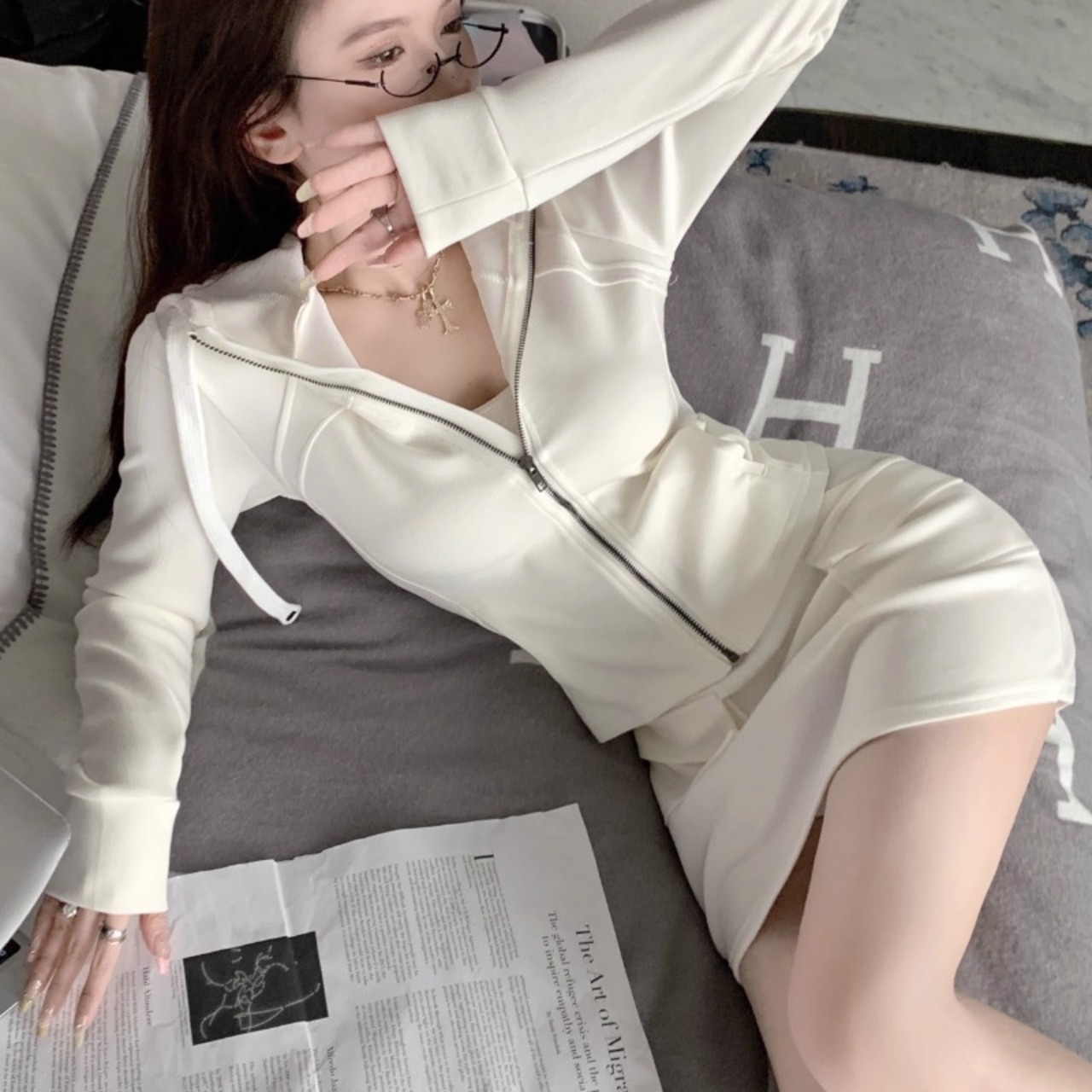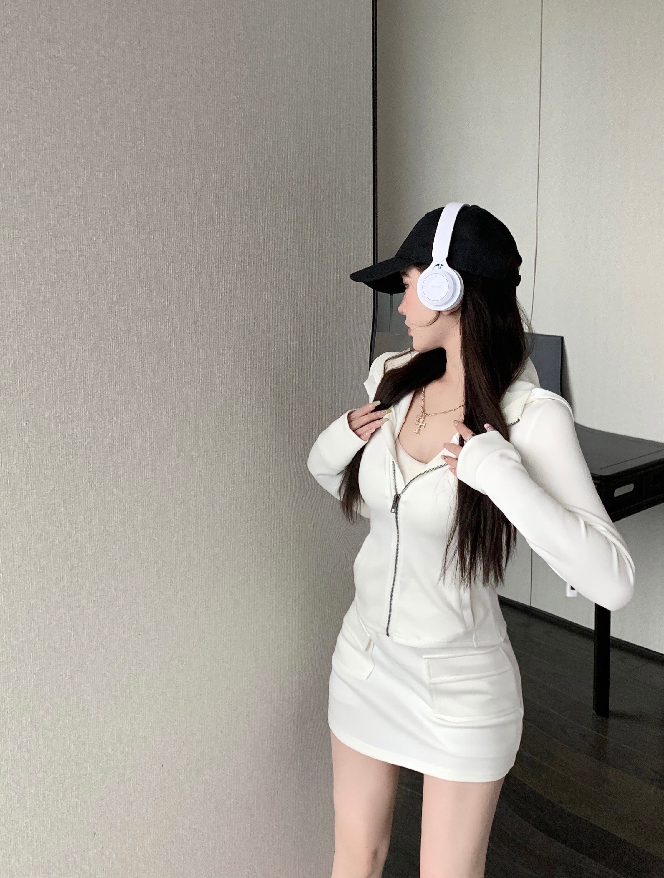 スポーツウェア スーツ レディース 秋 フード付き カーディガン ジャケット ウエスト ミニ スカート 2 点セット 服 オータム 秋物