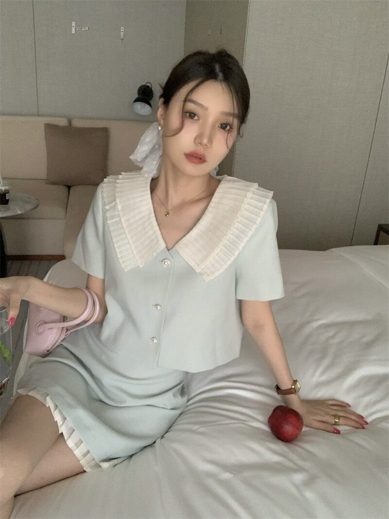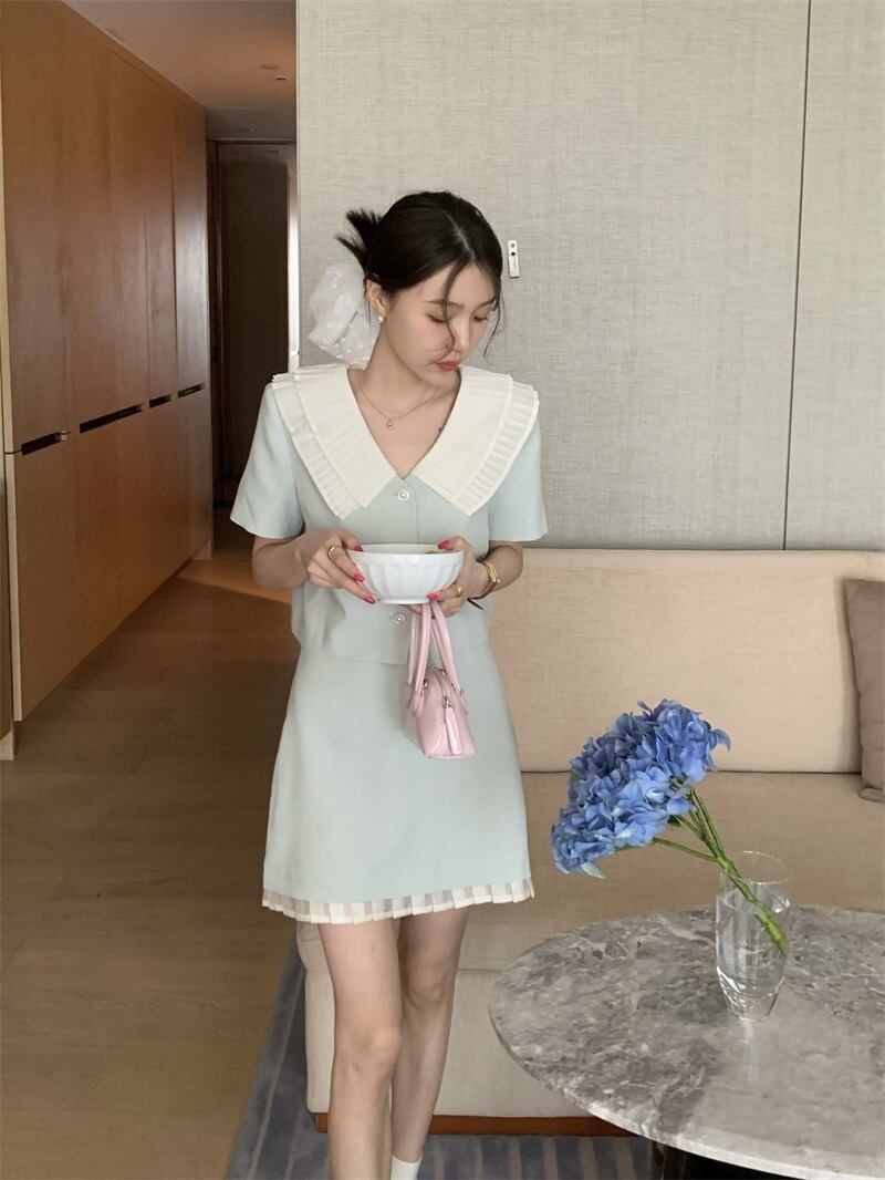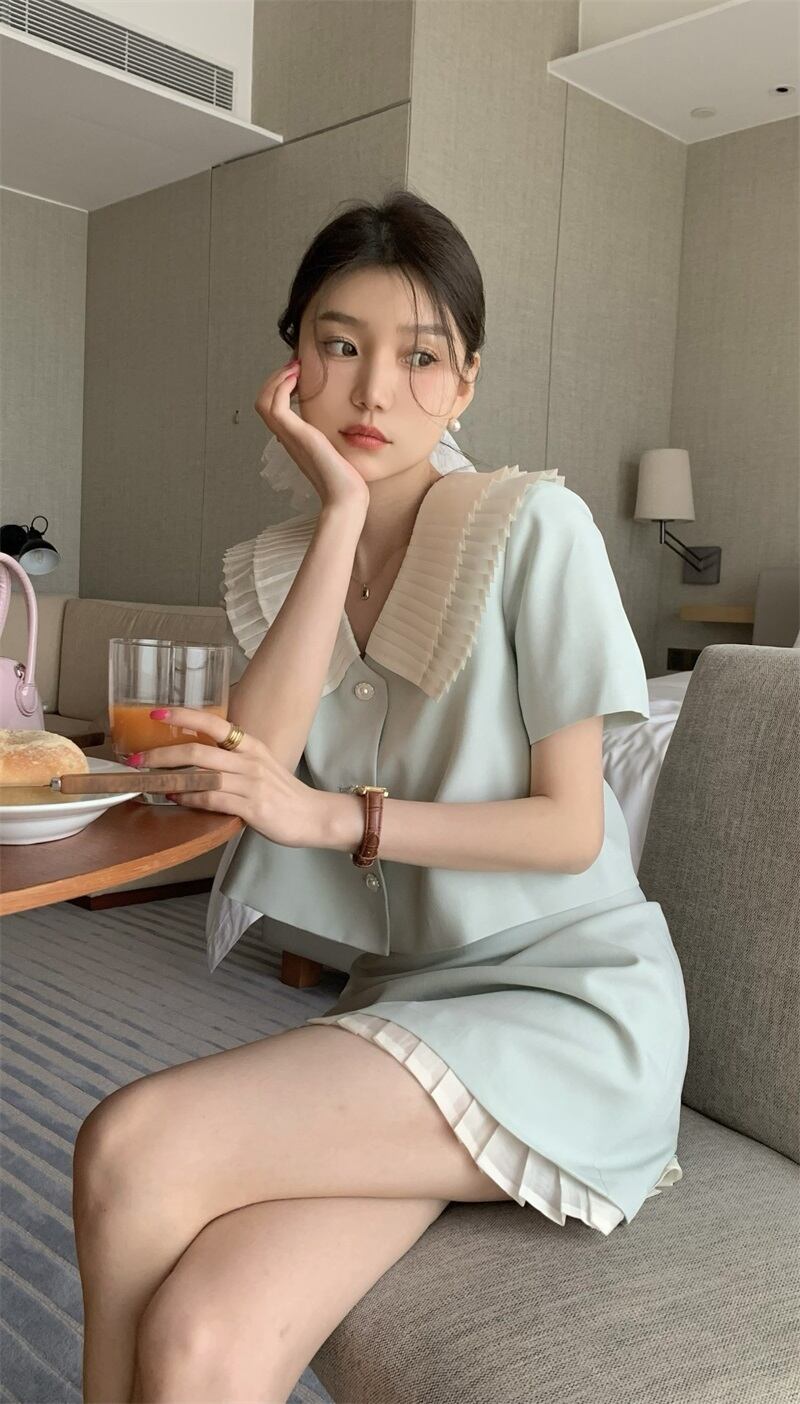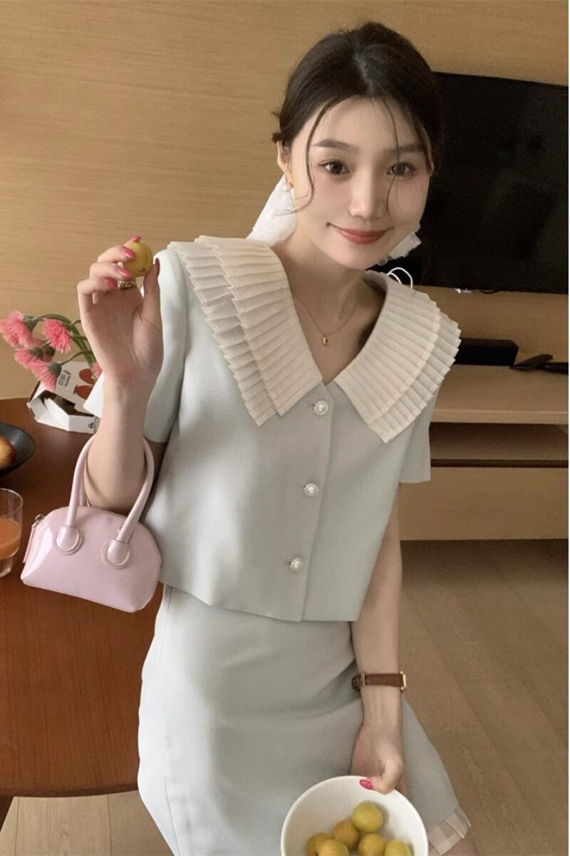 スイートガールスーツ レディース 夏 ロータスカラー スリムフィット カーディガントップ ウエストラップ ヒップ ショートスカート 2点セット 大人ガーリー スウィート キュート カジュアル サマー 夏物