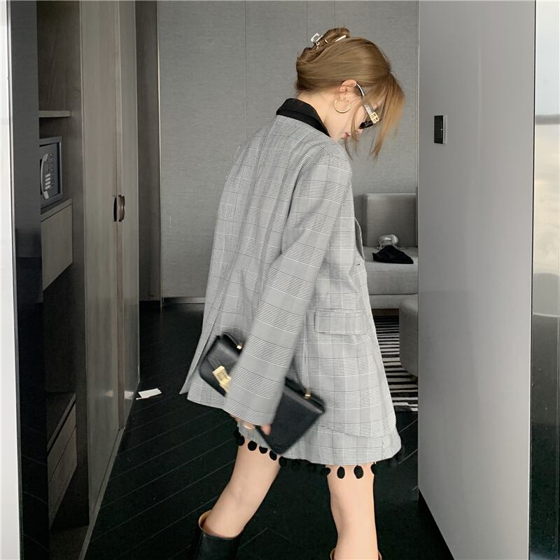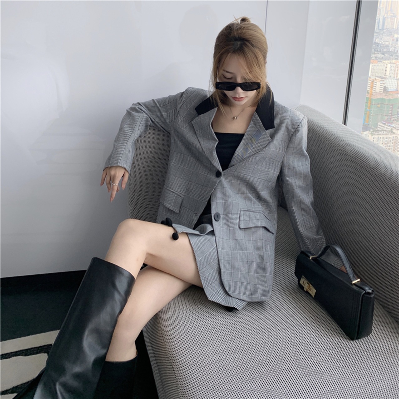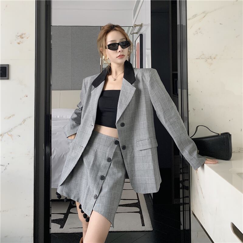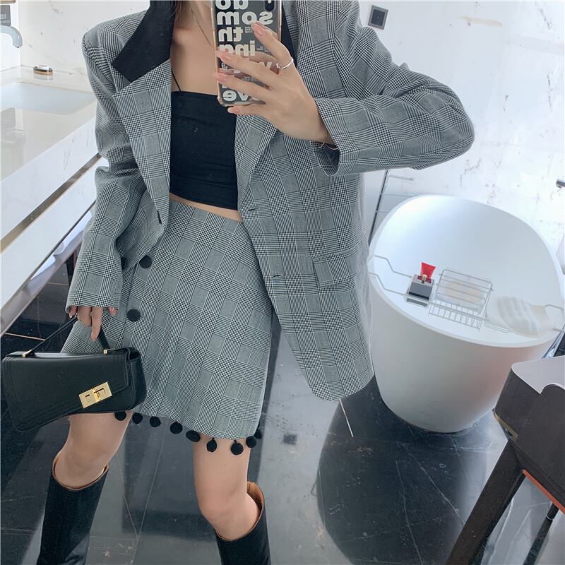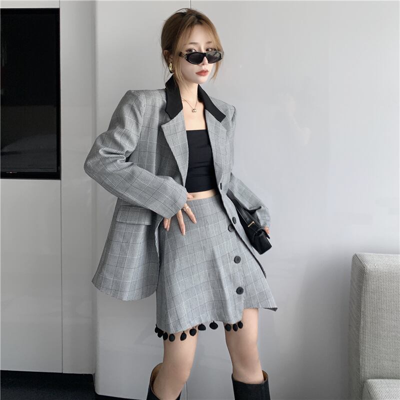 スタイル OL スーツ レディース 秋 チェック 長袖 コート イレギュラー ミニスカート 2点セット 服 ロング オータム 秋物 会社 学校 通勤や通学にも