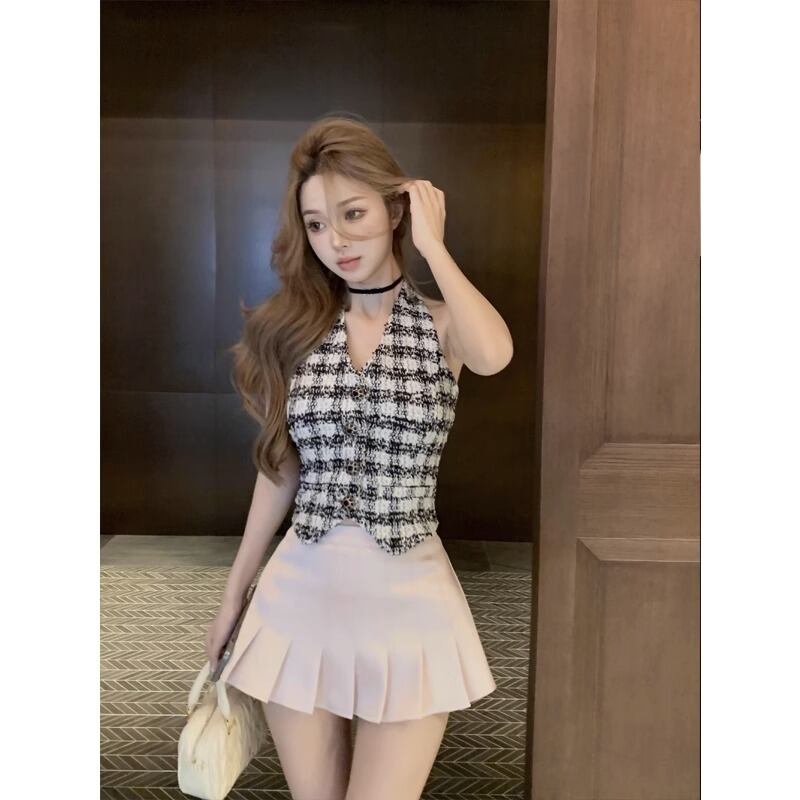 スイートガールスーツ夏ジャカード織ベスト V ネックトップピンクプリーツスーパーミニスカート 2 点セット服 大人ガーリー スウィート キュート カジュアル サマー 夏物 Vネック
