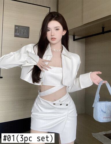 甘いホットガールスーツ秋セクシー長袖コートトップウエストミニスカート 3 点セット服 ロング 大人ガーリー スウィート キュート カジュアル オータム 秋物