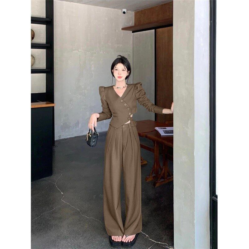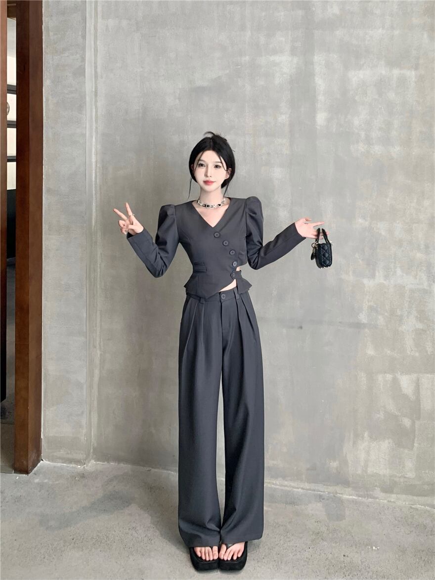 Gothiscyn 秋コートエンドスリムフィットスリムウエスタンスーツコートワイドレッグパンツ 2 点セット服 オータム 秋物 ワイドパンツ