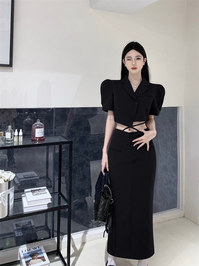 スーツ レディース 夏 イレギュラー 半袖 コート ウエスト レースアップ ミニスカート 2点セット 服 サマー 夏物