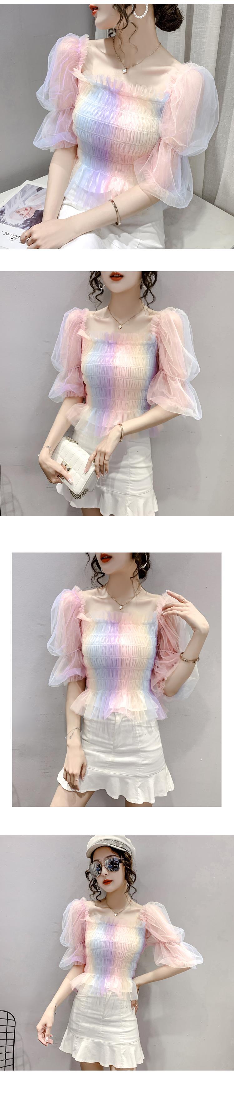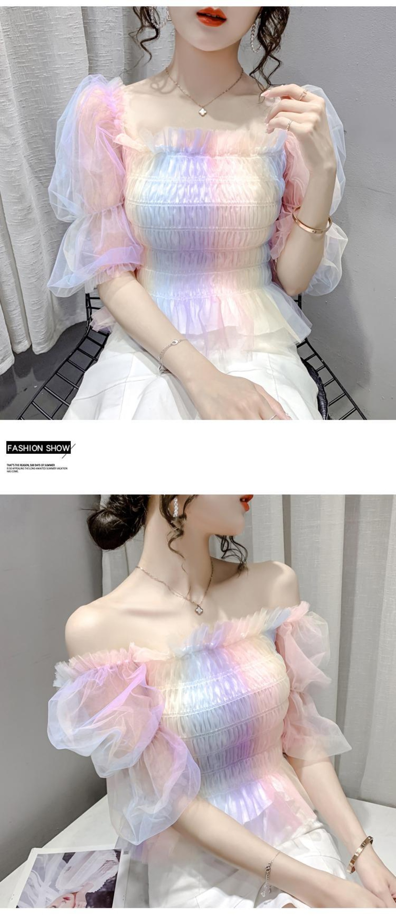 Gothiscyn 夏カラフル Tシャツセンスメッシュショートバブルスリーブ Tシャツオフショルダートップ服 サマー 夏物