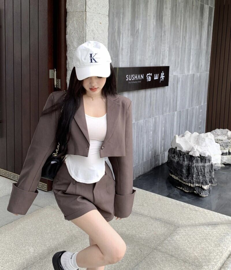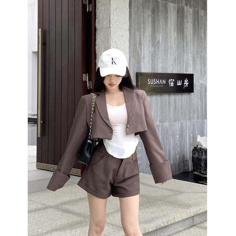 甘いホットガールスーツ光沢あるショートコート反転ウエストワイドレッグショーツ 2 点セット Femlae 服 大人ガーリー スウィート キュート カジュアル ブルマー ワイドパンツ シルク
