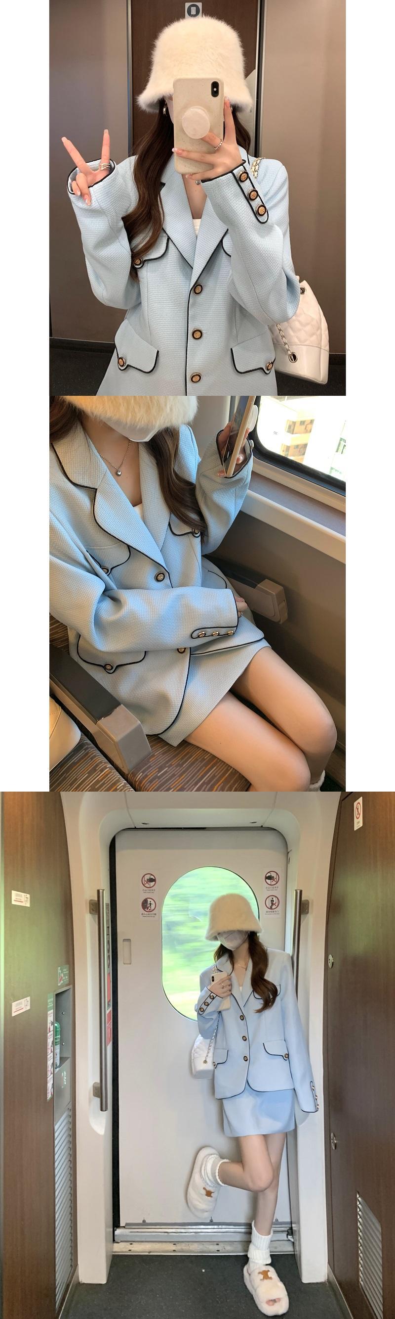 Sweet Girl コントラストカラースーツ秋長袖ターンダウンカラーコートトップウエストミニスカート 2 点セット ロング 大人ガーリー スウィート キュート カジュアル オータム 秋物