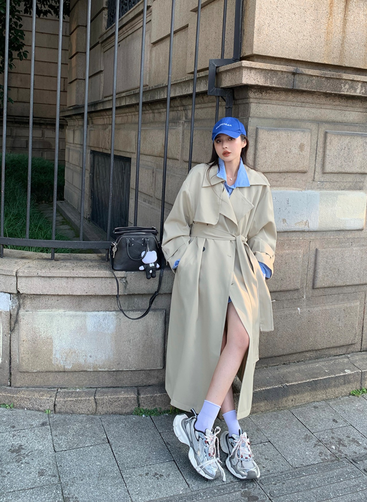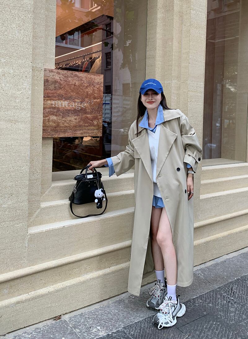 Gothiscyn トレンチコート服通勤フレンチプレミアムロングトレンチ