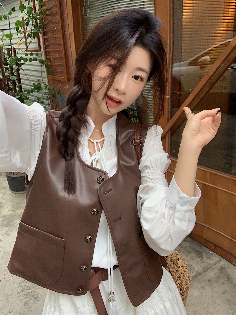 フレンチスーツ レディース 秋 レザーコート ベスト 長袖 レースアップ ショートドレス ツーピースセット 服 ロング オータム 秋物