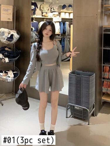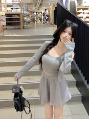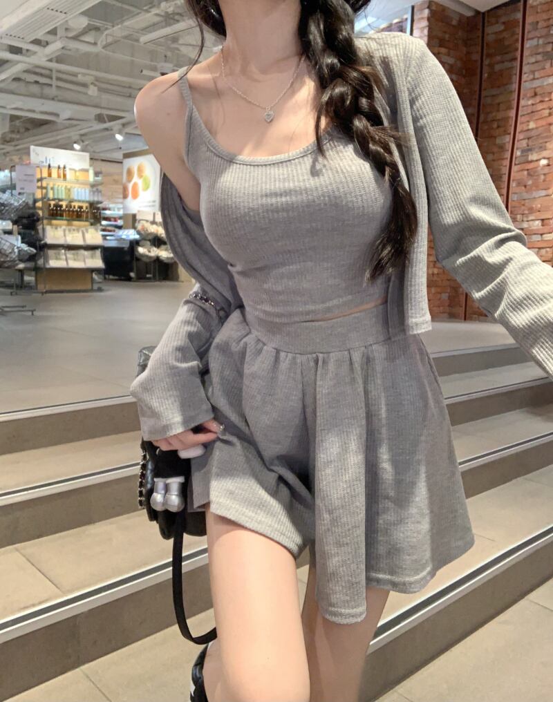 純粋セクシースーツ夏キャミソール長袖日焼け止めカーディガントップショーツグレー 3 点セット服 ロング サマー 夏物 ブルマー