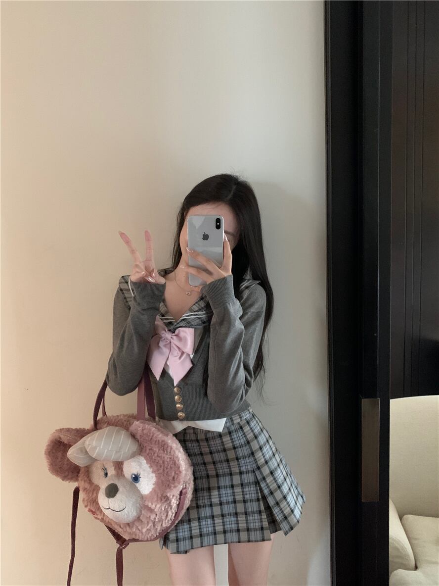 Sweet Girl ピュアセクシー アカデミースタイルスーツ レディース 秋 セーラー襟 長袖 カーディガン ウエスト ミニスカート 2点セット ロング 大人ガーリー スウィート キュート カジュアル オータム 秋物