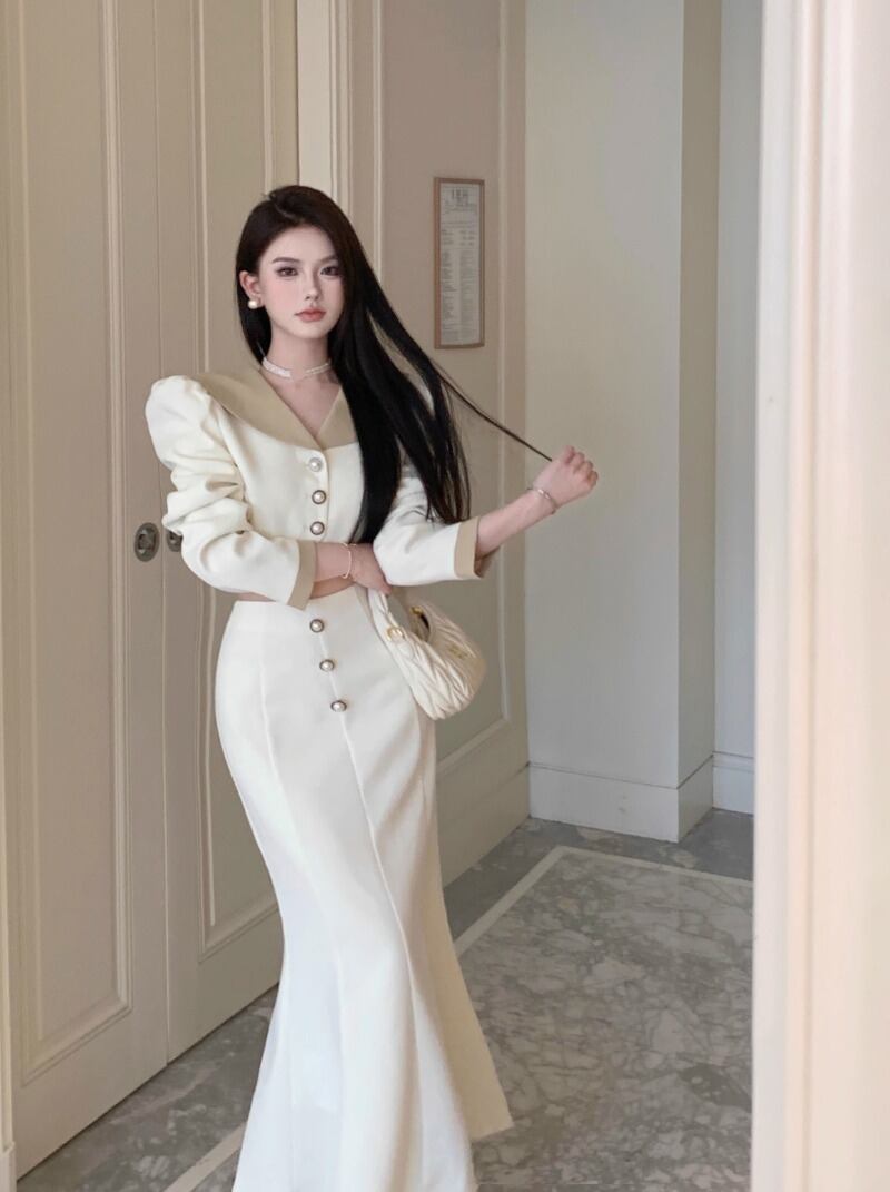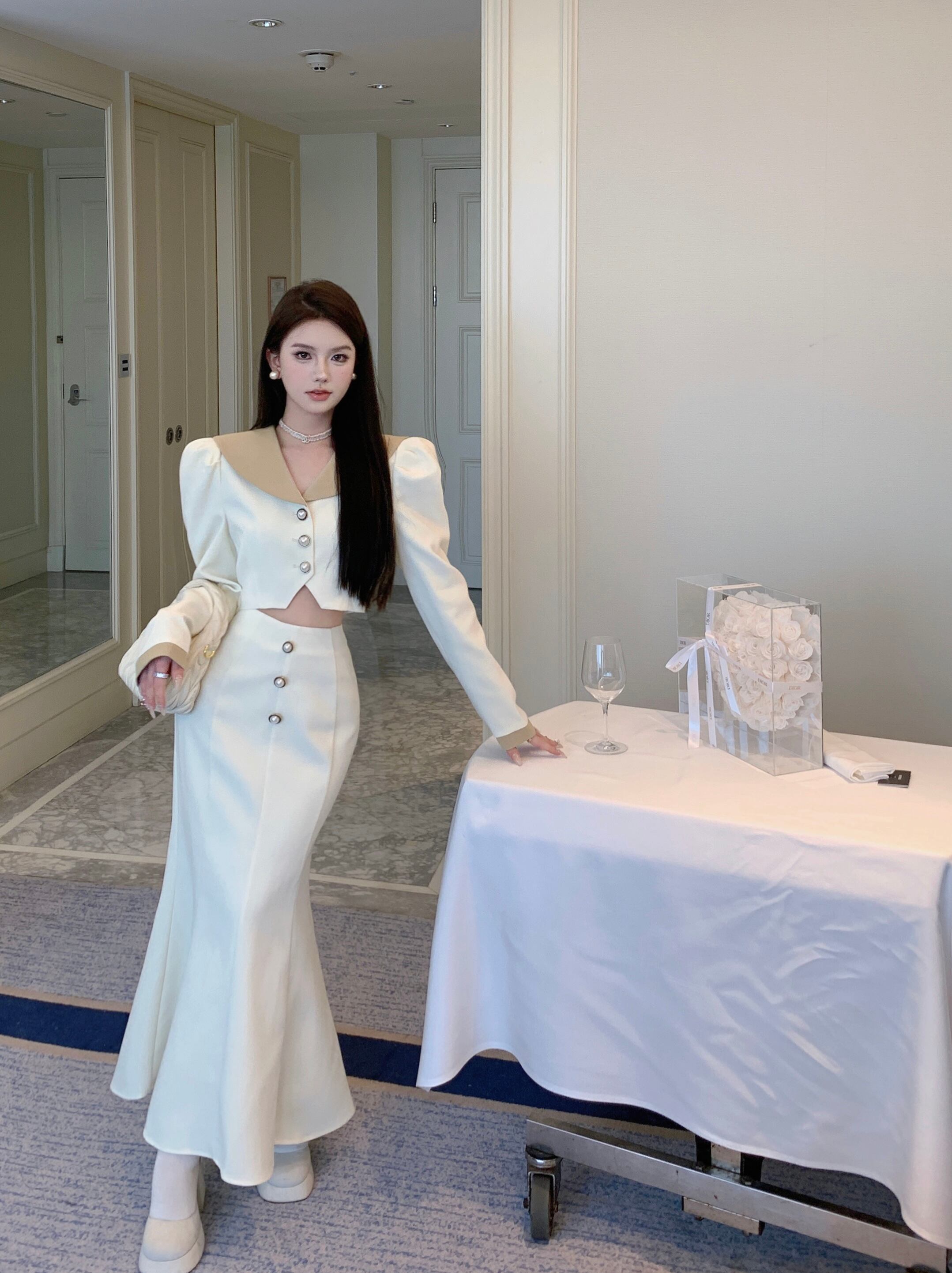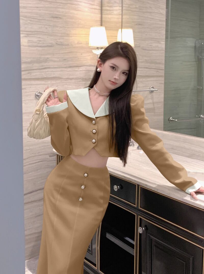 スタイル OL スーツ レディース 秋 ショートコート ウエストマーメイド ロングスカート 2点セット 服 オータム 秋物 会社 学校 通勤や通学にも
