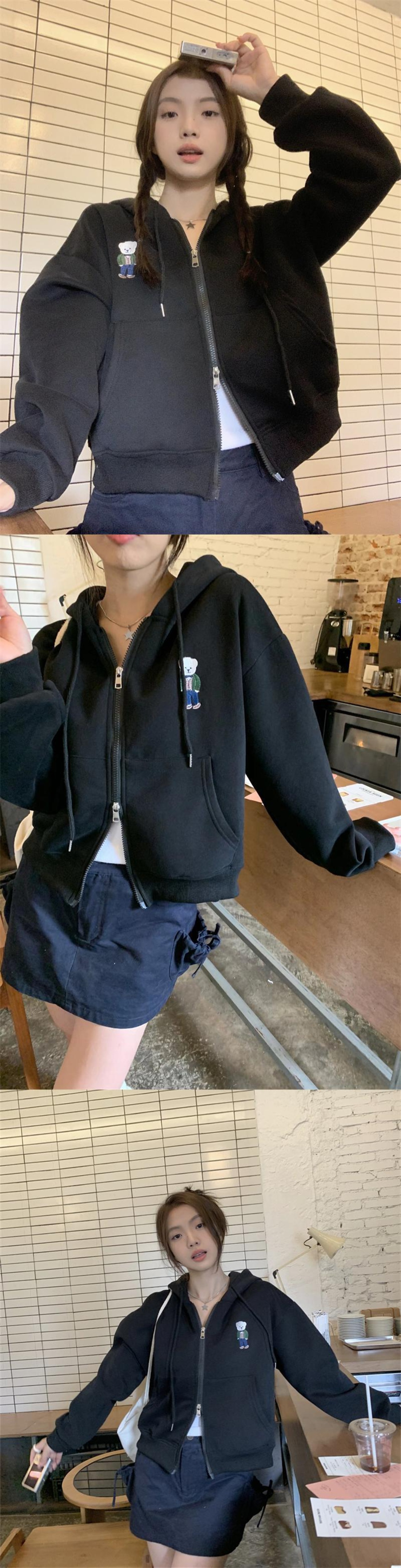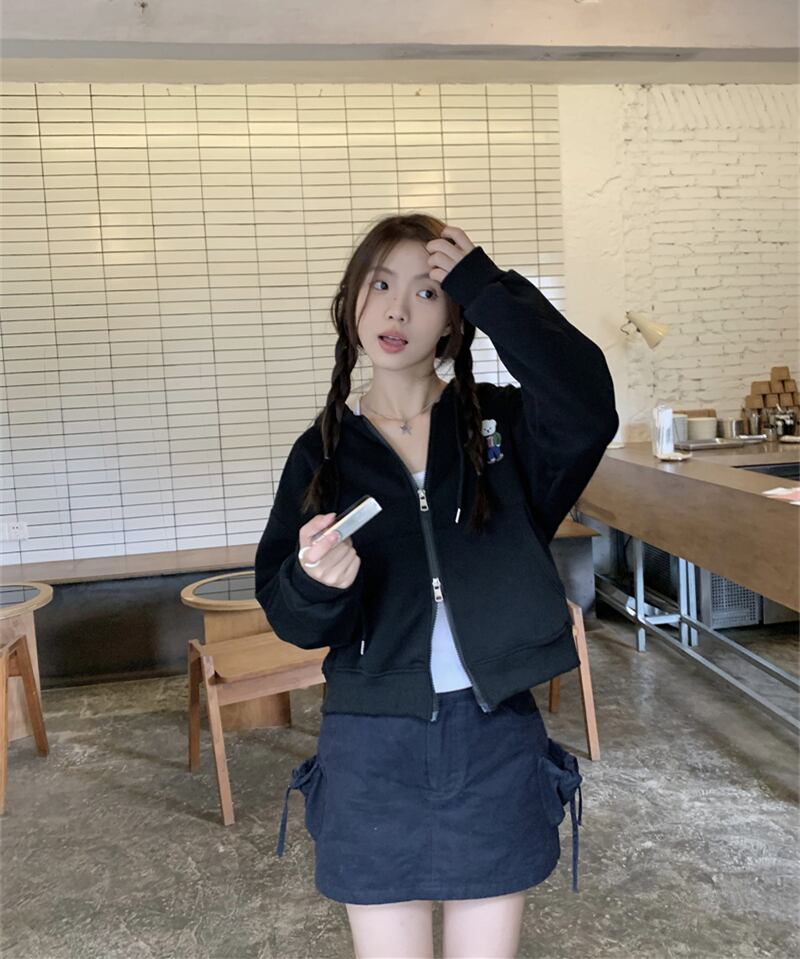 スタイルスイートホットガールパーカー秋長袖刺繍リトルベアカーディガンコート服 ロング レッド 大人ガーリー スウィート キュート カジュアル オータム 秋物