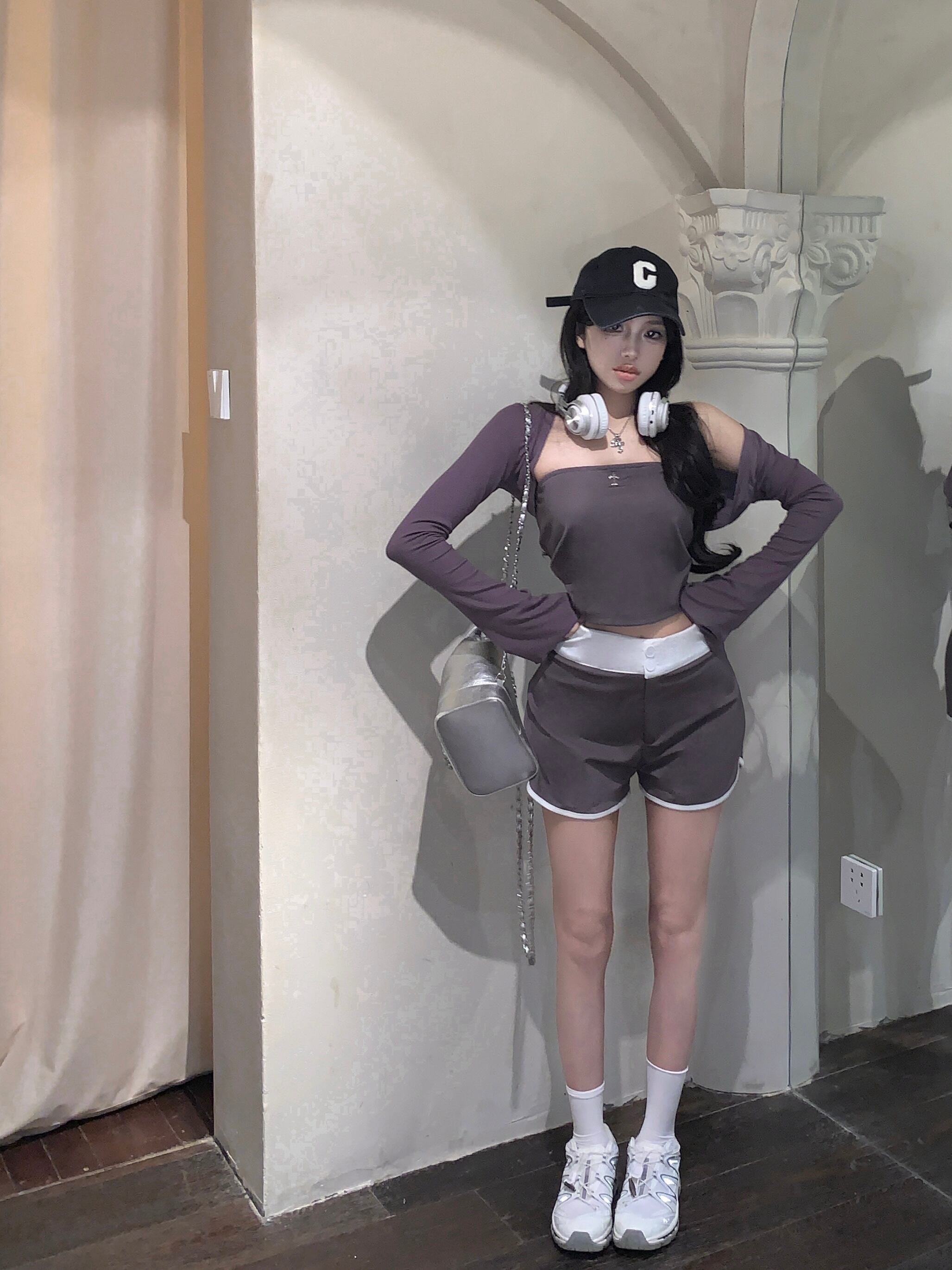 ホットガールズセクシースーツ秋長袖カーディガンタンクトップウエストショーツ 3 点セット服 ロング オータム 秋物 ブルマー