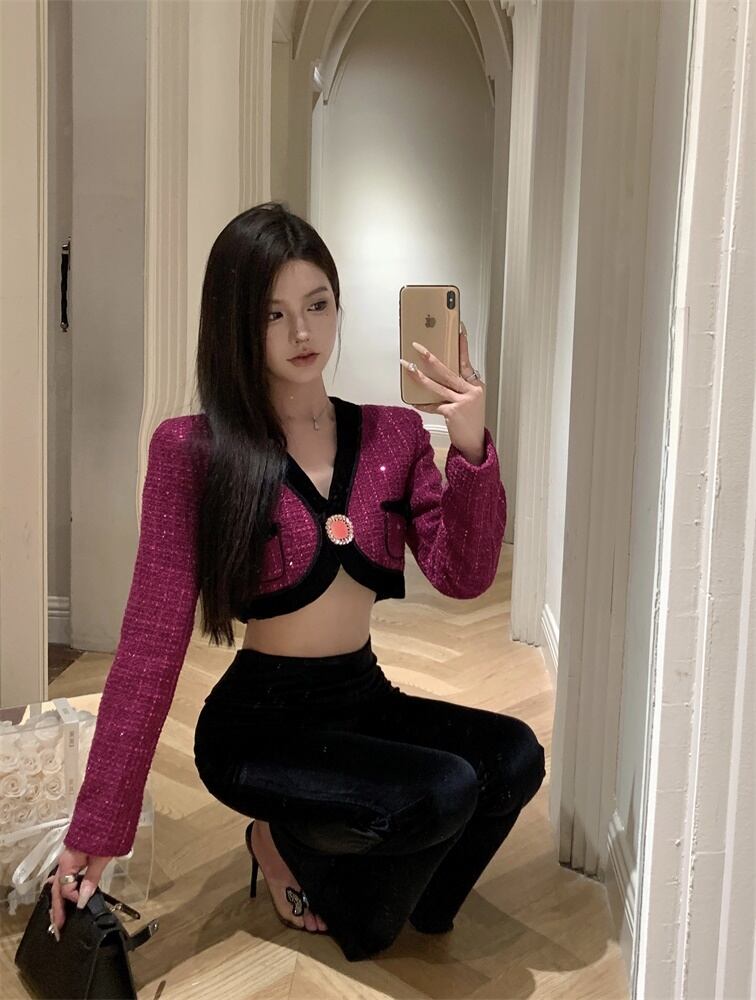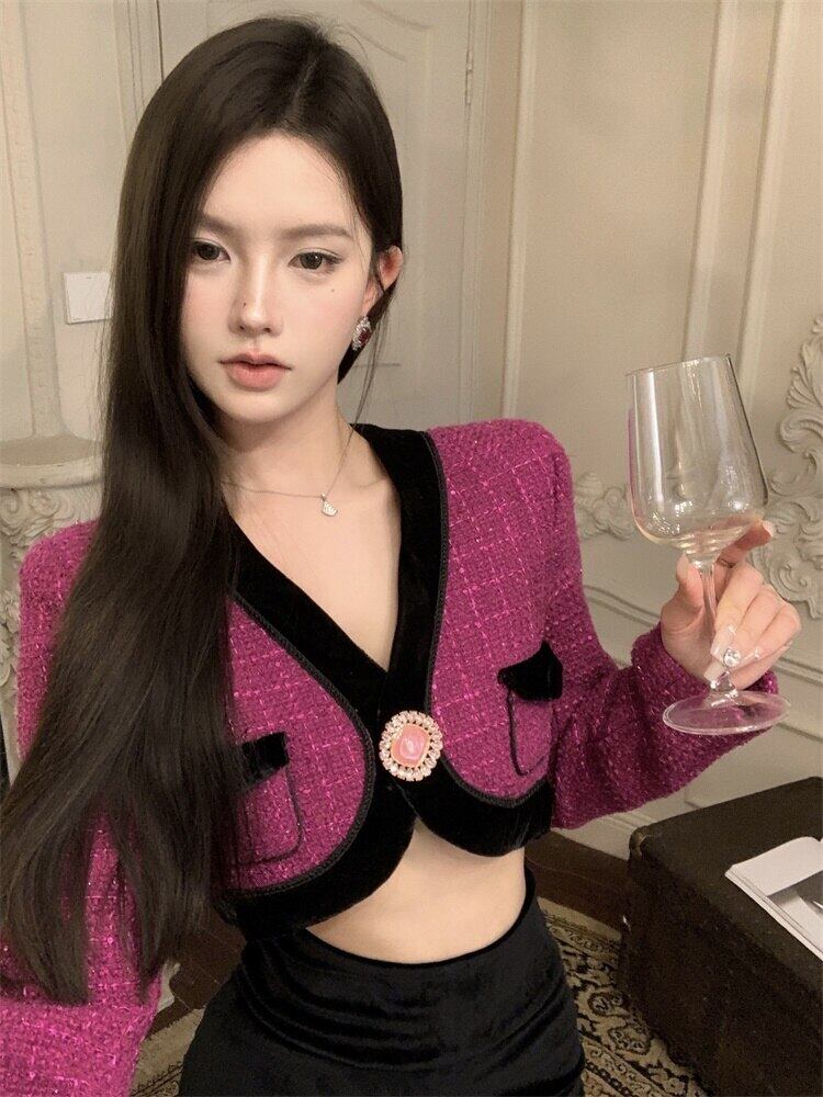 スイート ホット ガール スーツ レディース 秋 スパンコール ツイード スパークリング ダイヤモンド パッチワーク ジャケット ベルベット フレア パンツ 2 点セット 大人ガーリー スウィート キュート カジュアル オータム 秋物