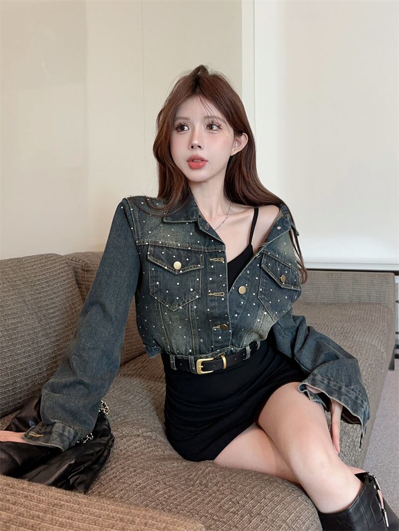 アメリカンホットガールセクシースーツ秋ラップヒップストラップドレス長袖デニムコートツーピースセット服 ロング オータム 秋物