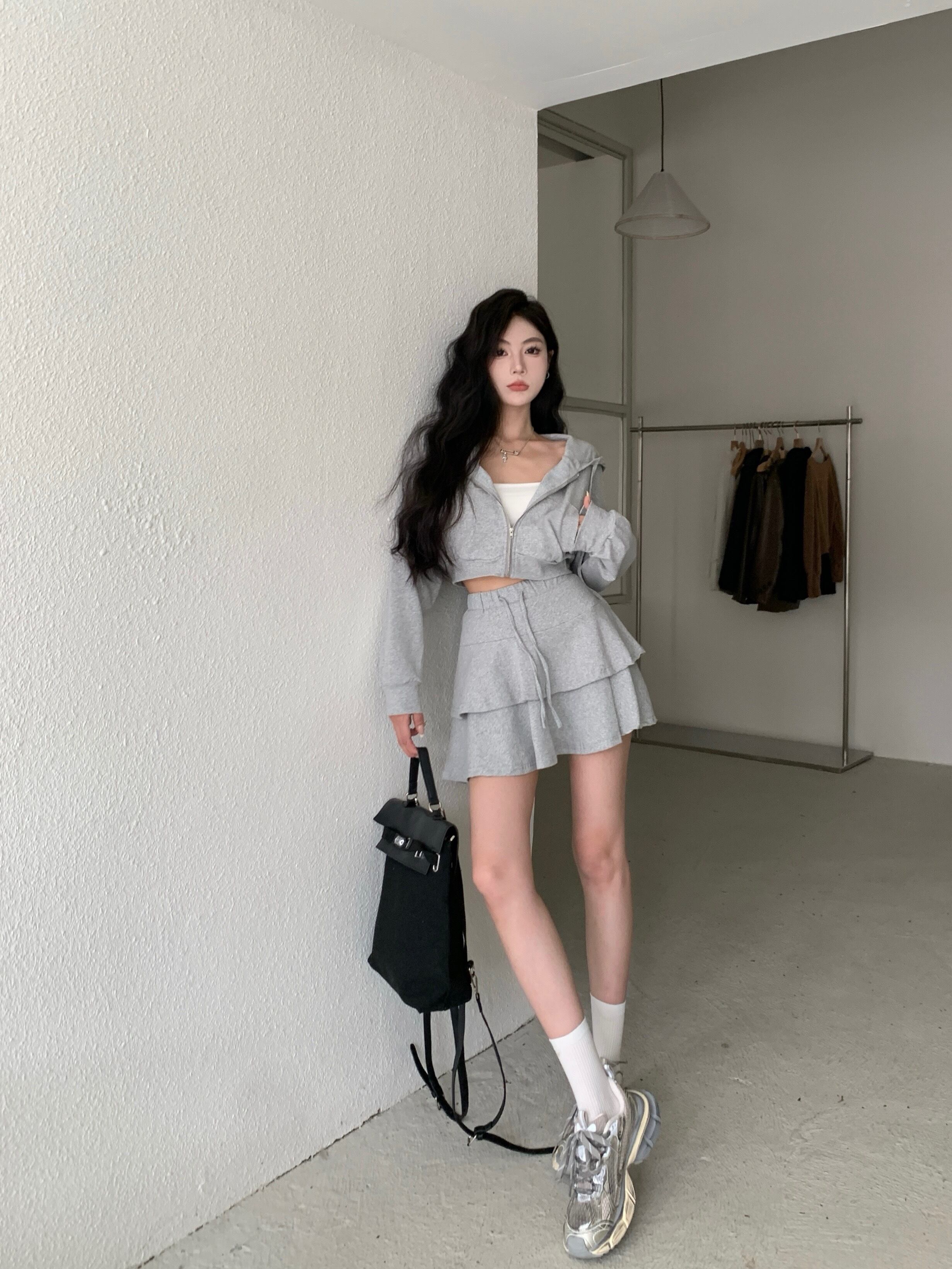 ホットガールスポーツスーツ秋ルーズフード付きスウェットシャツウエストミニスカートツーピースセット服 オータム 秋物