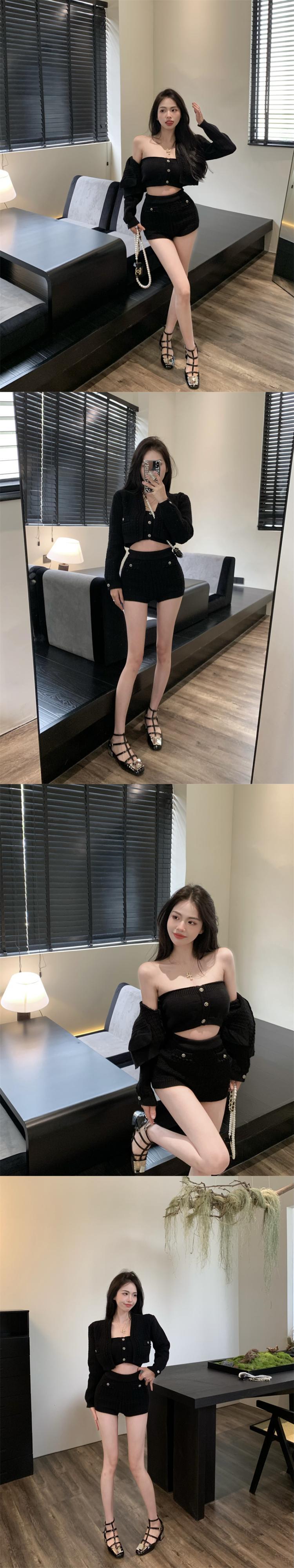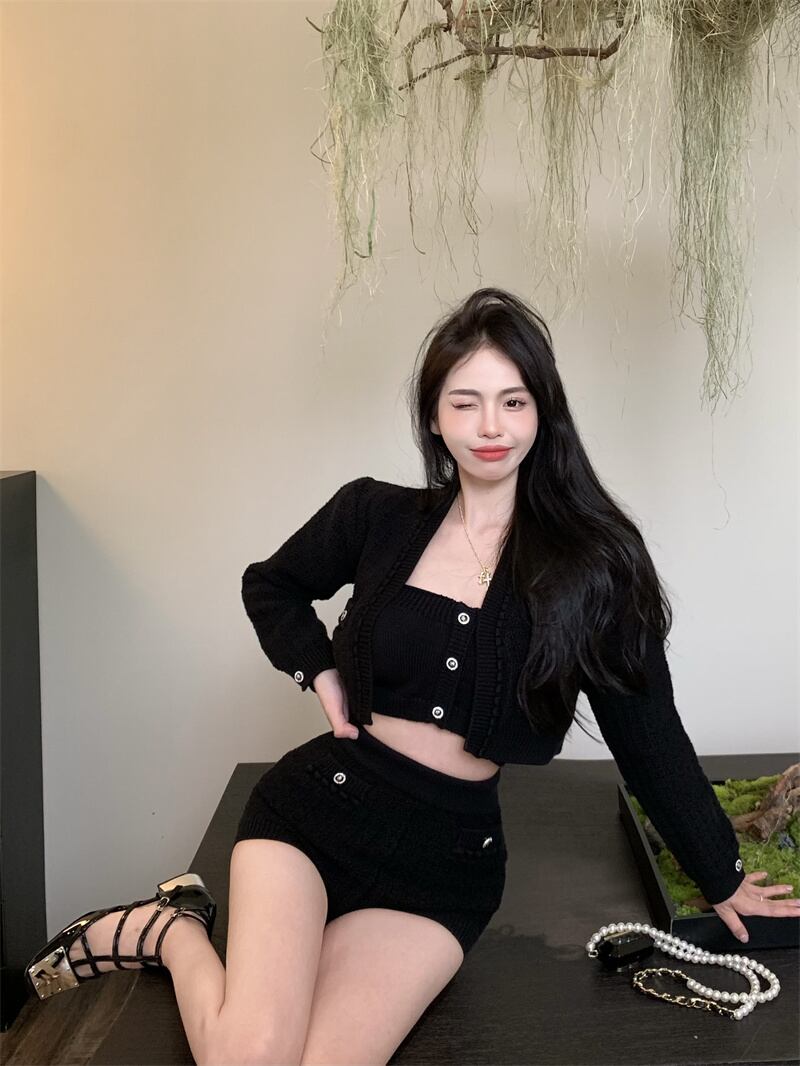甘いホットガールスーツ秋ニットセーターカーディガンセクシーストラップレストップショーツ 3 点セット服 大人ガーリー スウィート キュート カジュアル オータム 秋物 ブルマー