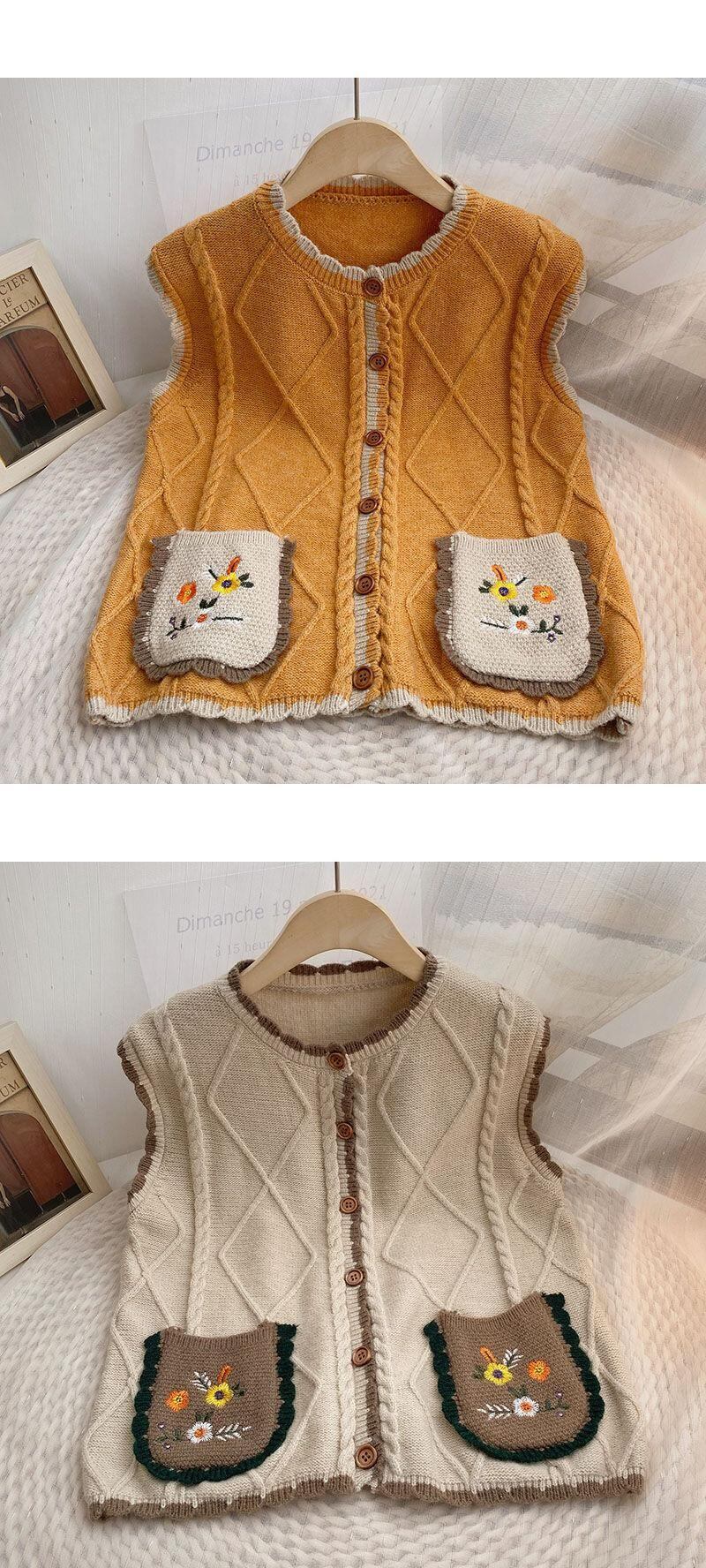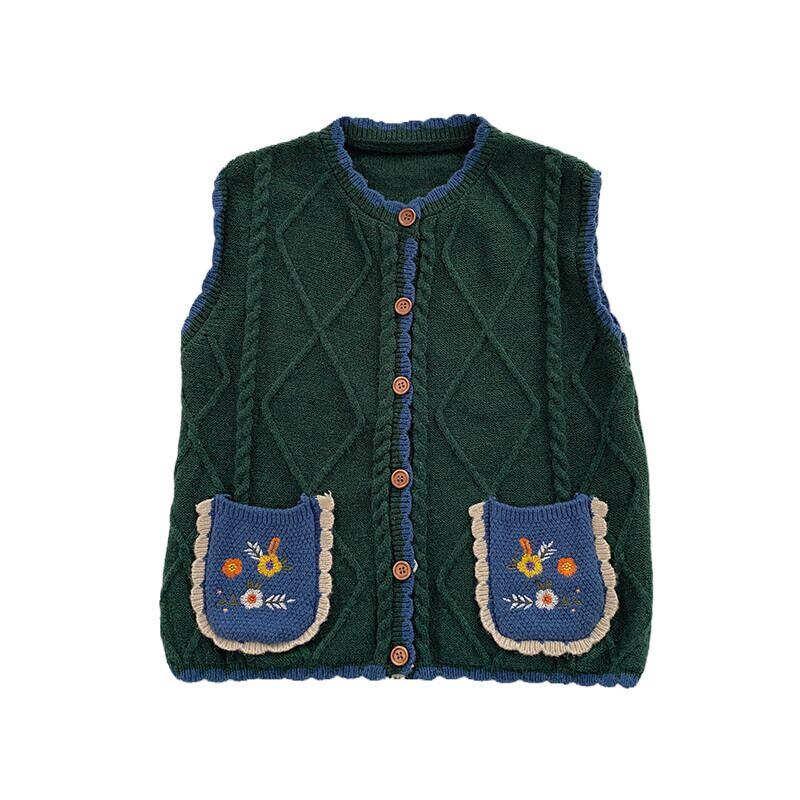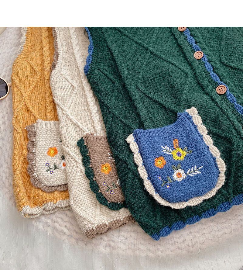 スタイル O ネックシングルブレストジャカードダブルポケットベスト秋と冬ルーズアウターカーディガン オータム 秋物 ウィンター 冬物 Oネック