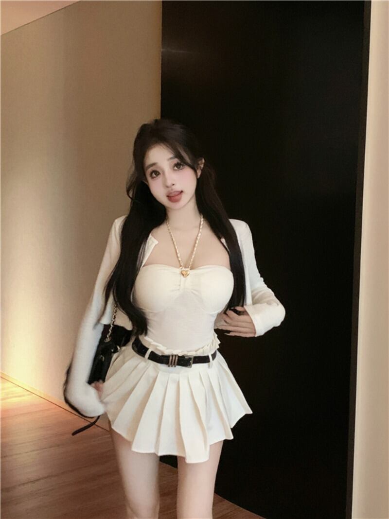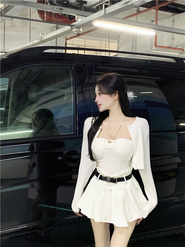 純粋セクシーホットガールスーツ秋スリムフィットショートホルターネックドレス長袖ショールカーディガンツーピースセット服 ロング オータム 秋物