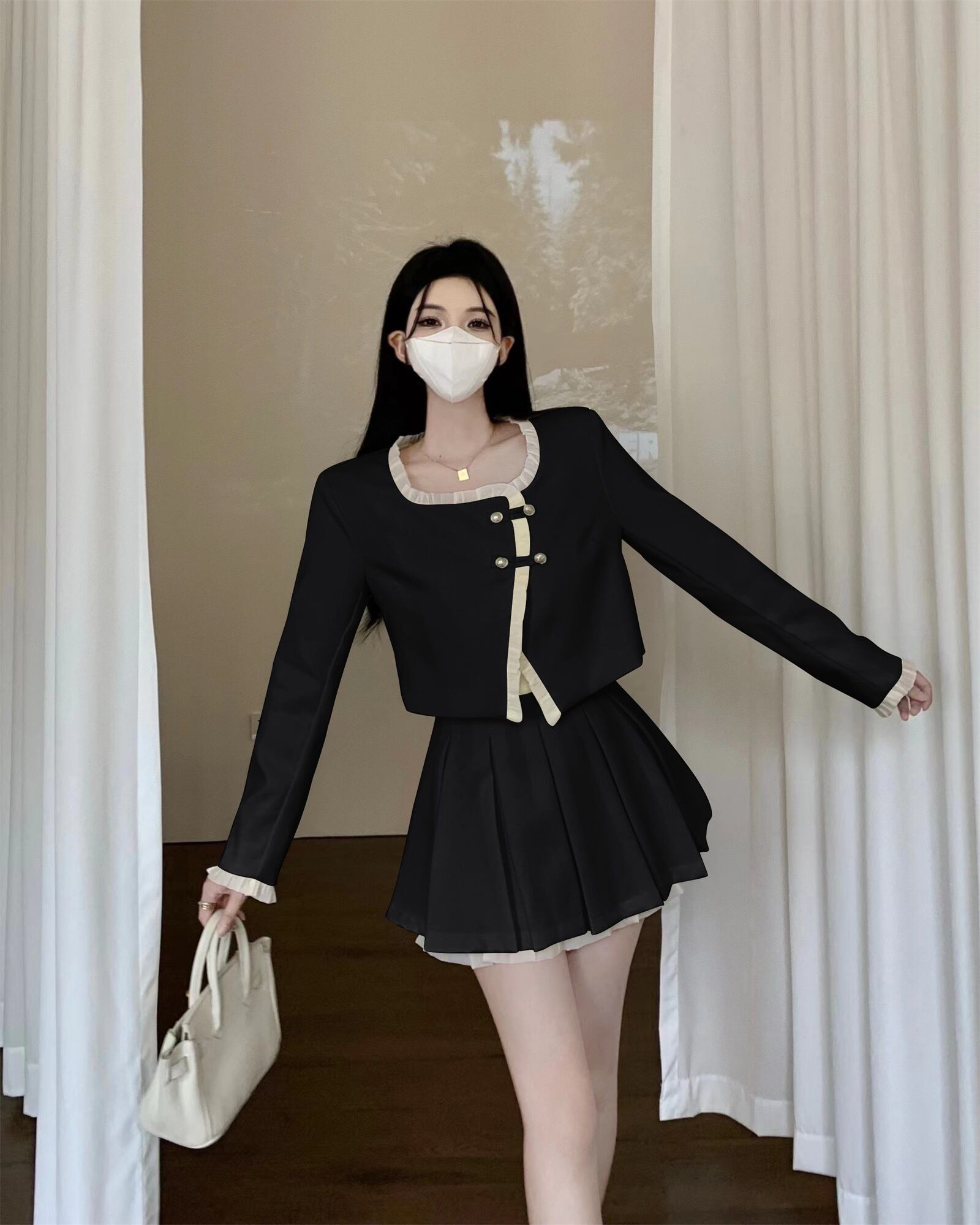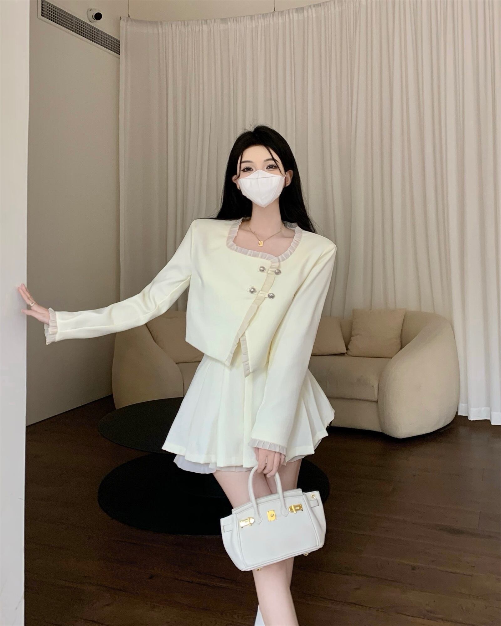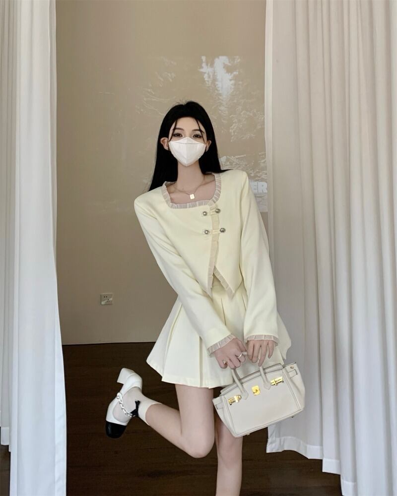 スタイルスーツ レディース 秋 フリル ショート ジャケット ウエスト プリーツ ショート スカート 2点セット 服 オータム 秋物