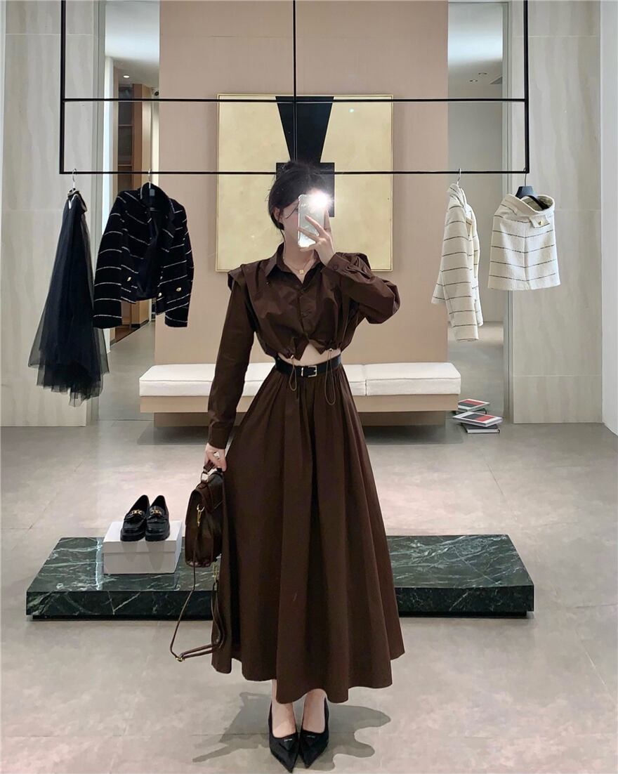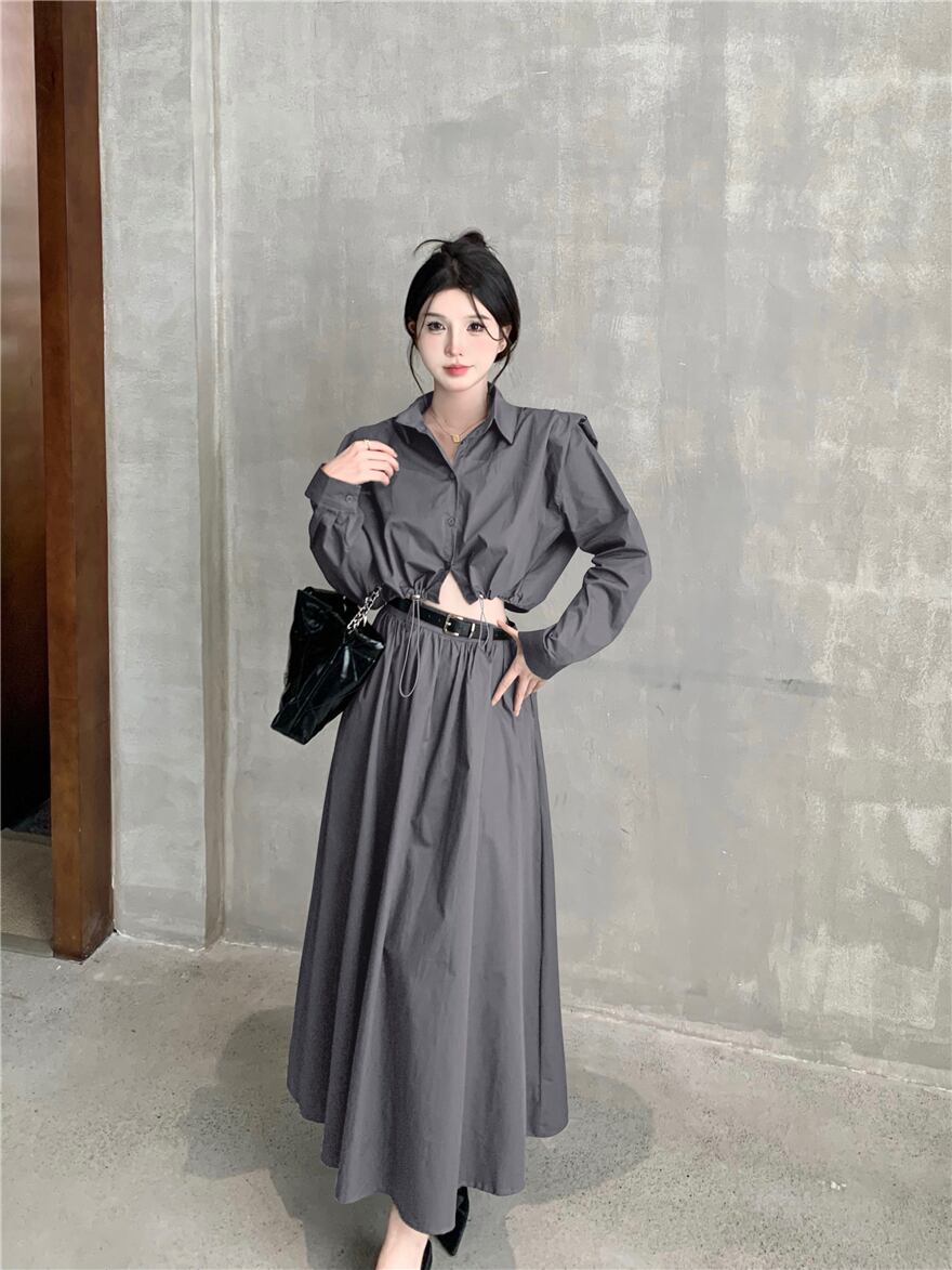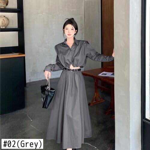 無地初秋多用途シャツ作業服ウエストハーフスカート 2 点セット オータム 秋物 ソリッドカラー