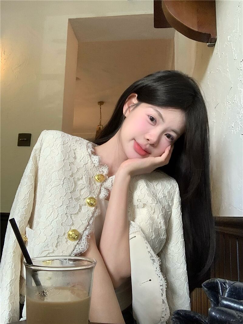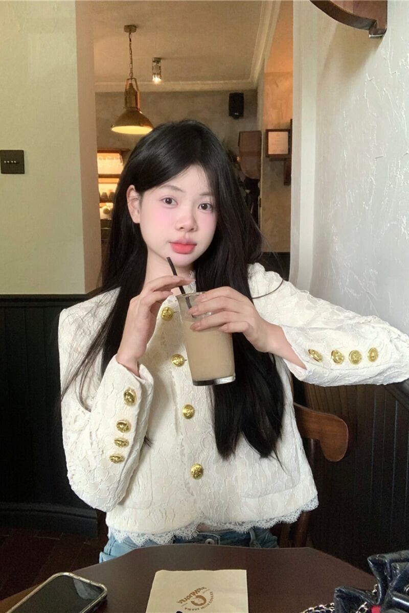 スタイルオフィスレディコート秋 O ネック白ルーズ長袖レースシングルブレストトップ服 ロング ホワイト オータム 秋物 Oネック 会社 学校 通勤や通学にも
