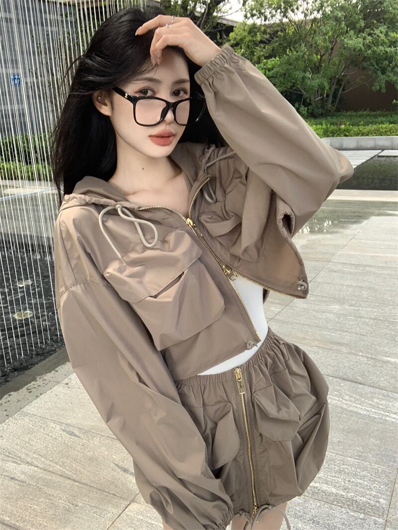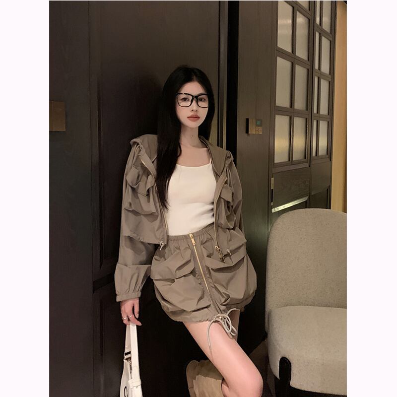 アメリカンホットガールズスーツ秋多彩長袖コートウエストショートスカートツーピースセット服 ロング オータム 秋物