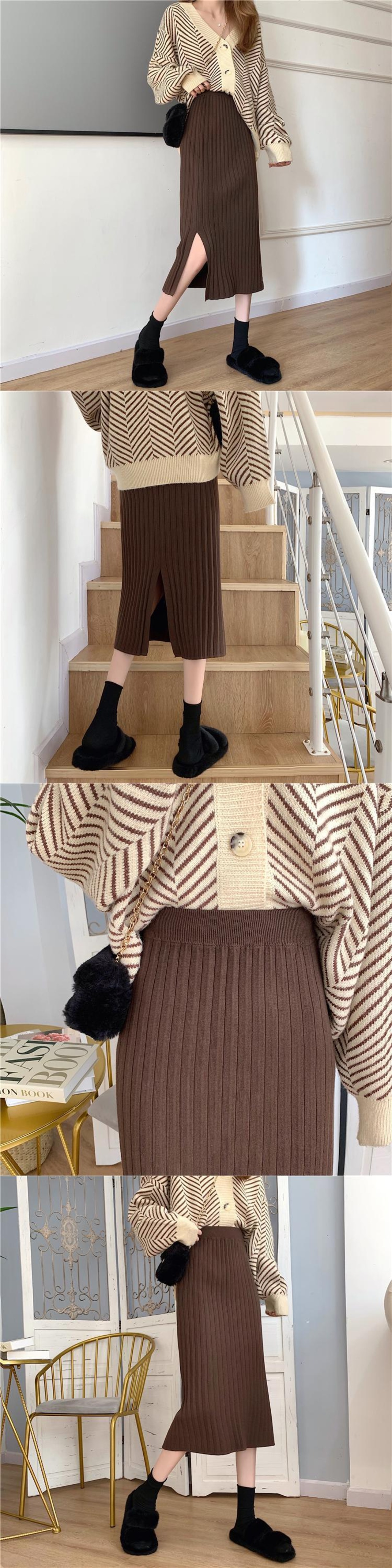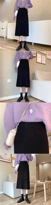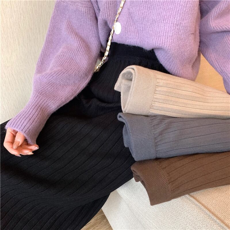 秋ニットハーフスカートレディースウールミッドレングスソリッドカラーヒップラップニットスカート オータム 秋物