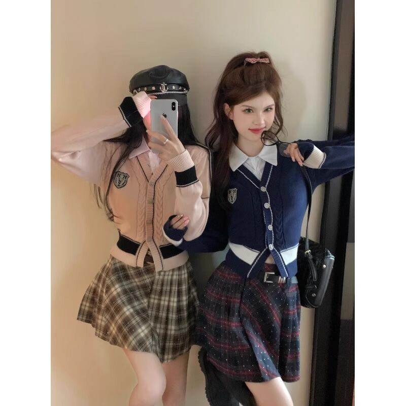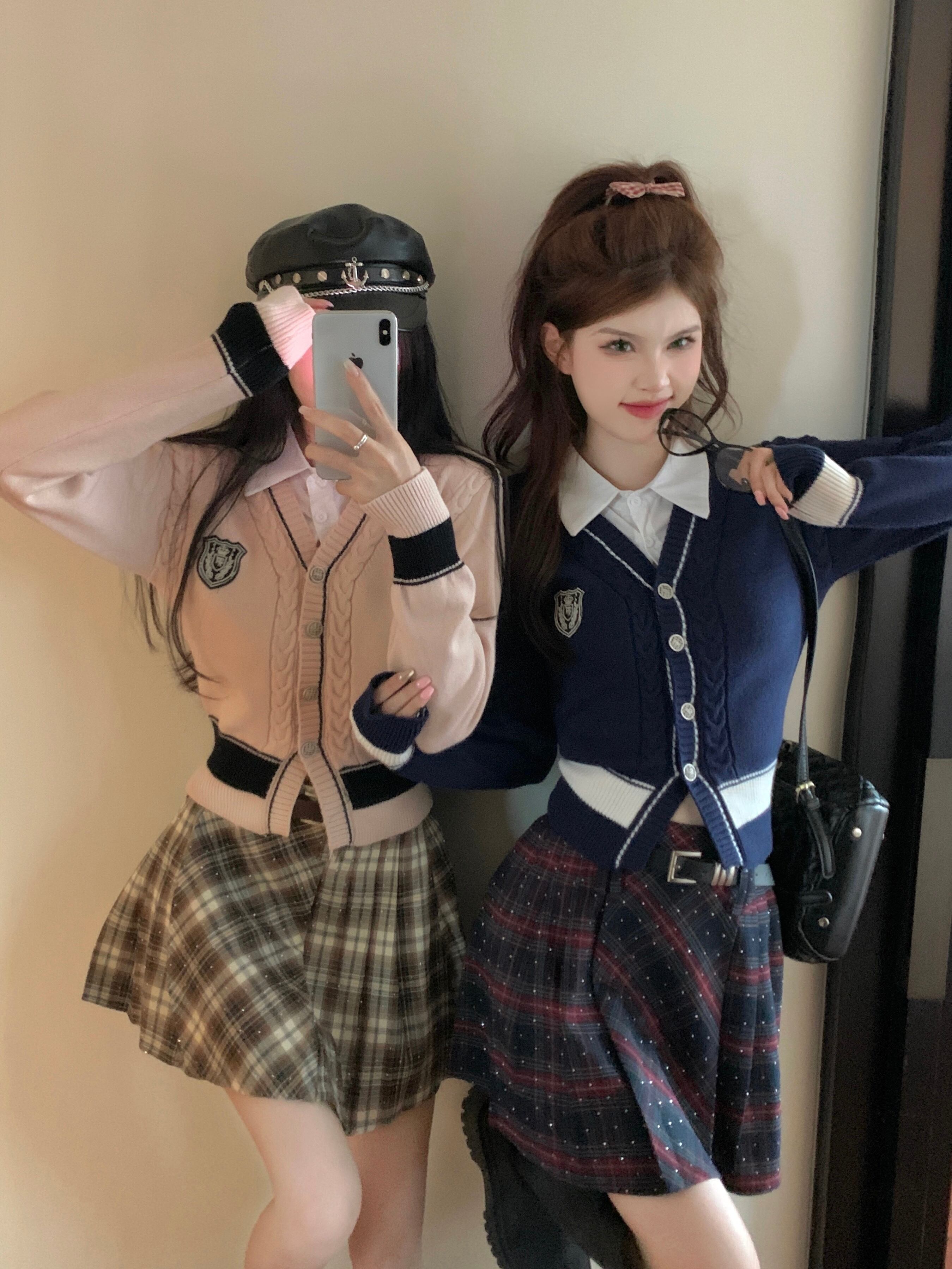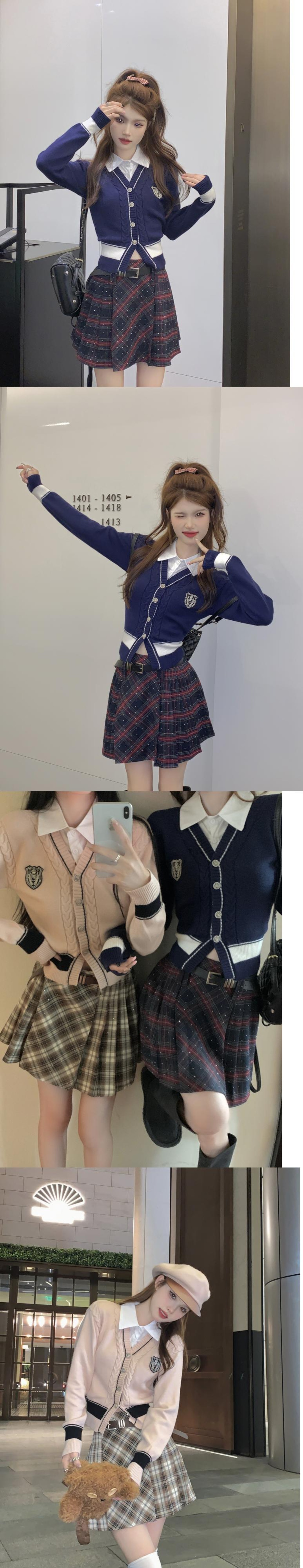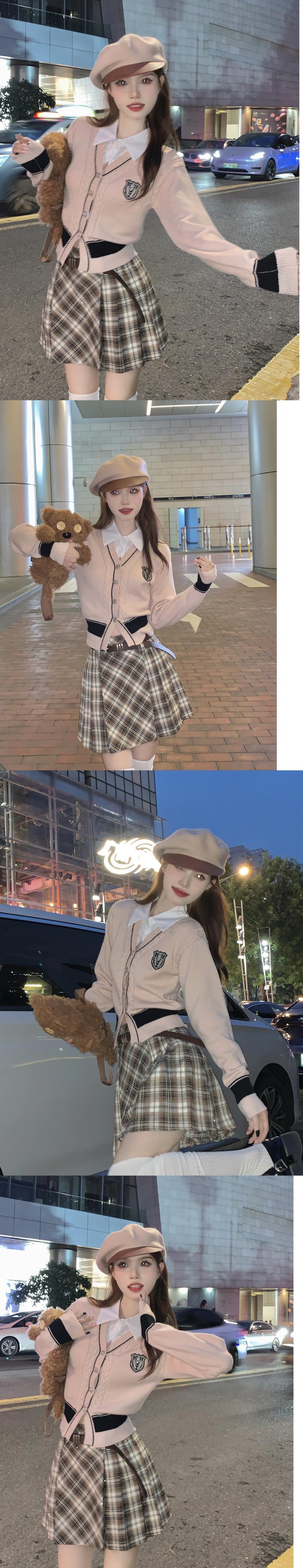 スイートガールスタイルスーツ秋ニットカーディガンセーターショートトップミニスカートツーピースセット服 大人ガーリー スウィート キュート カジュアル オータム 秋物