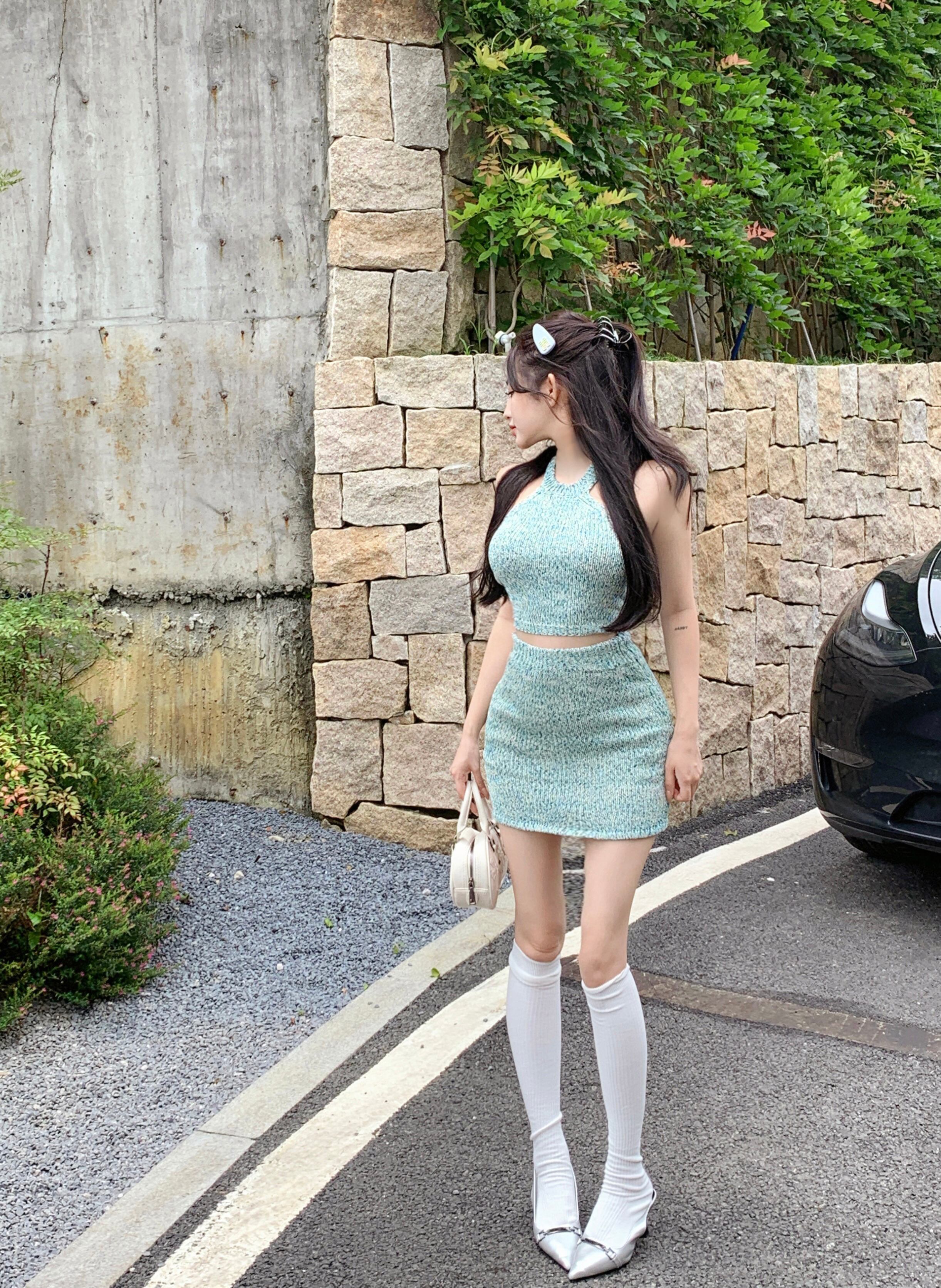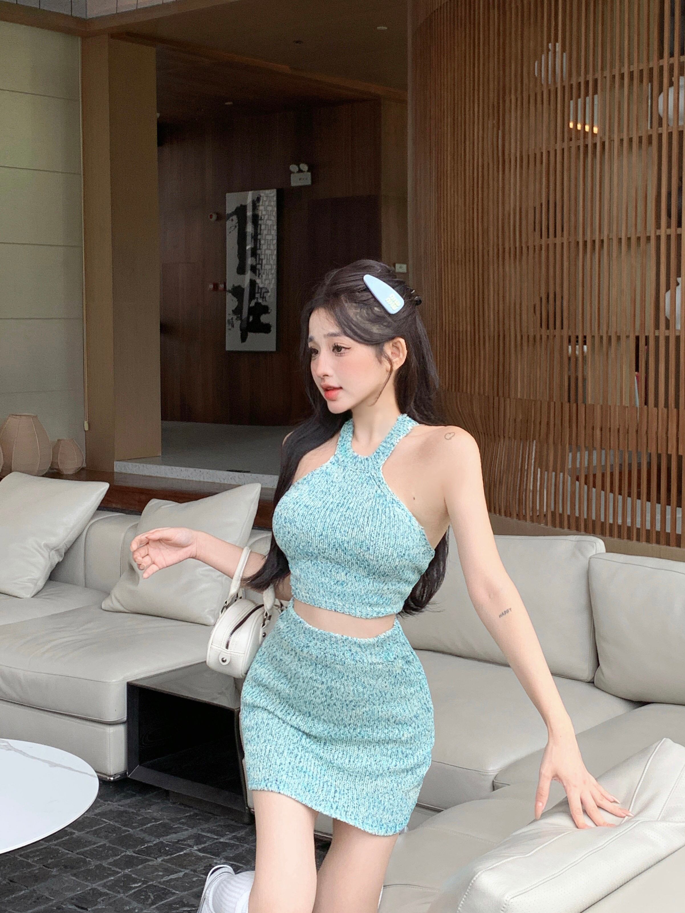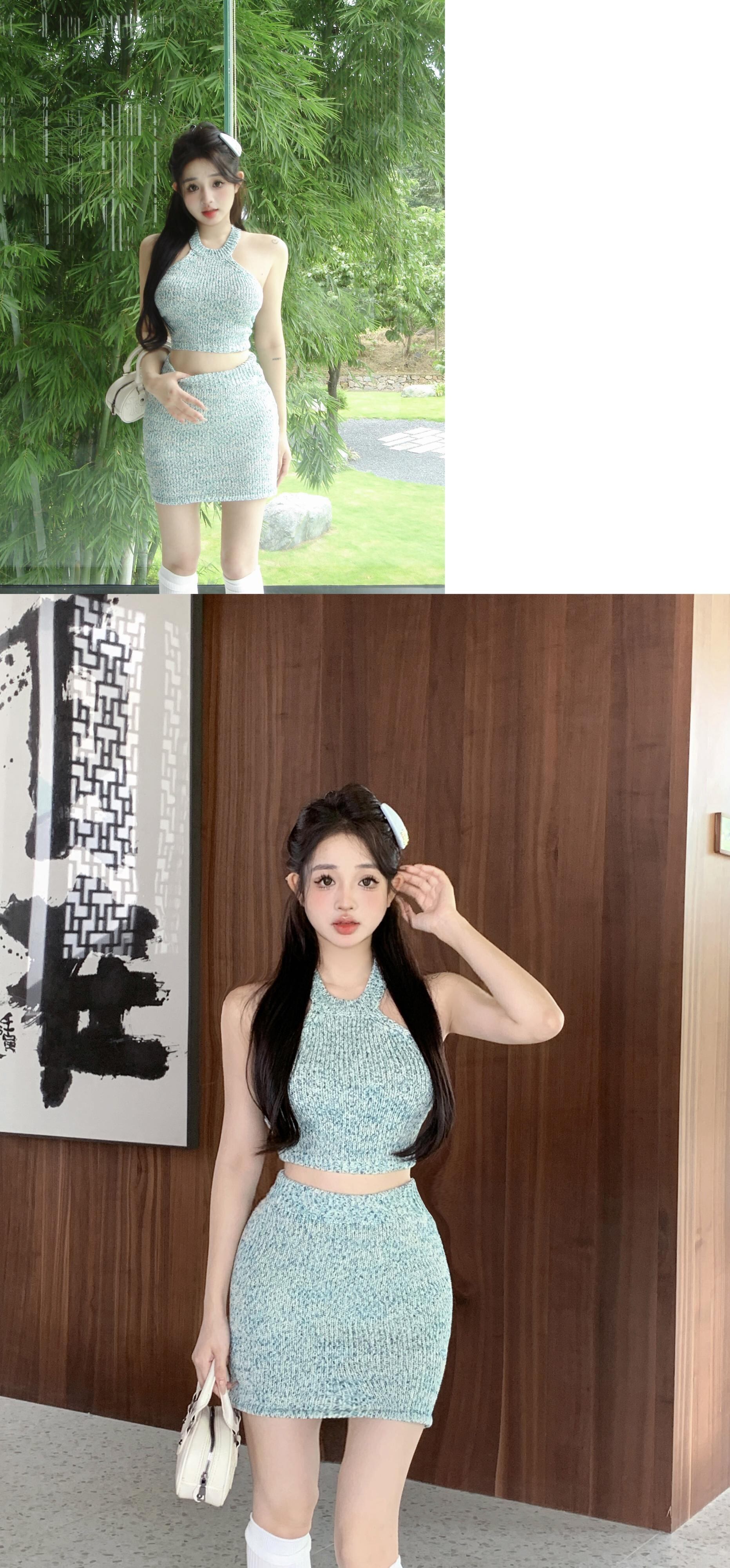 甘いホットガールスーツ夏セクシーホルタースリムフィットタンクトップウエストラップヒップスカートツーピースセット服 大人ガーリー スウィート キュート カジュアル サマー 夏物