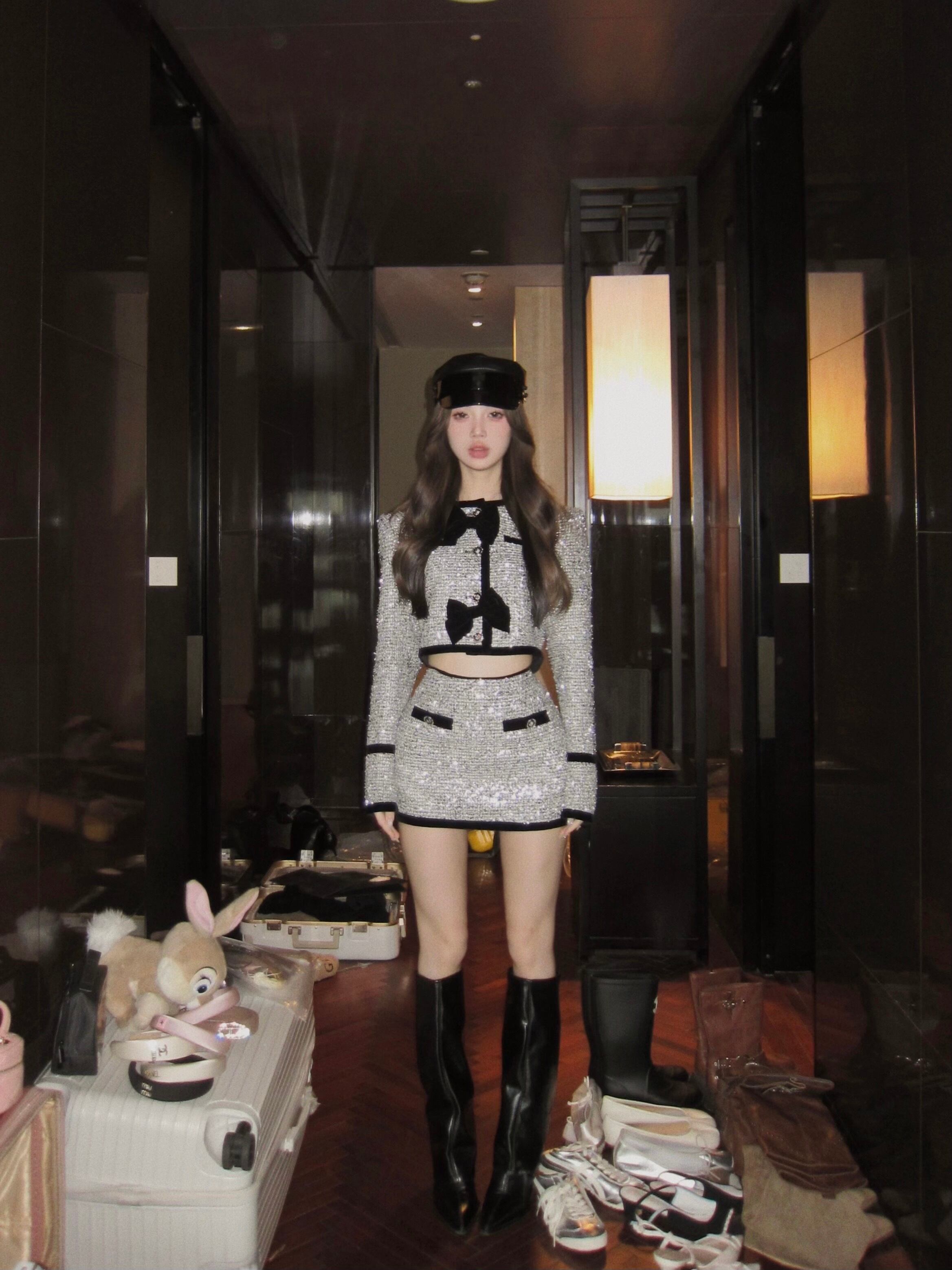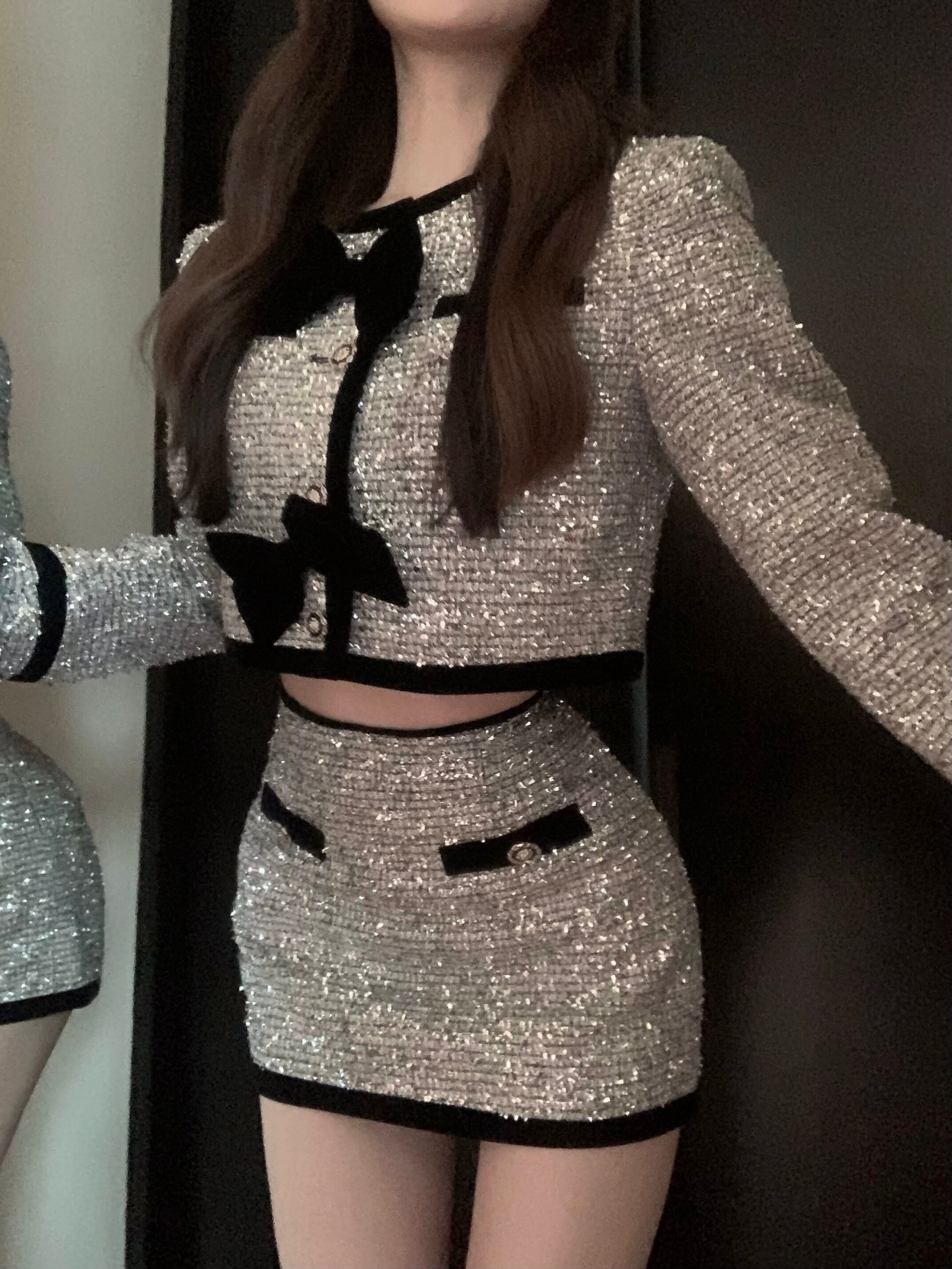 スイートホットガールスーツ秋長袖リボンスリムコートウエストミニスカートツーピースセット服 ロング 大人ガーリー スウィート キュート カジュアル オータム 秋物