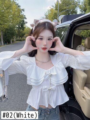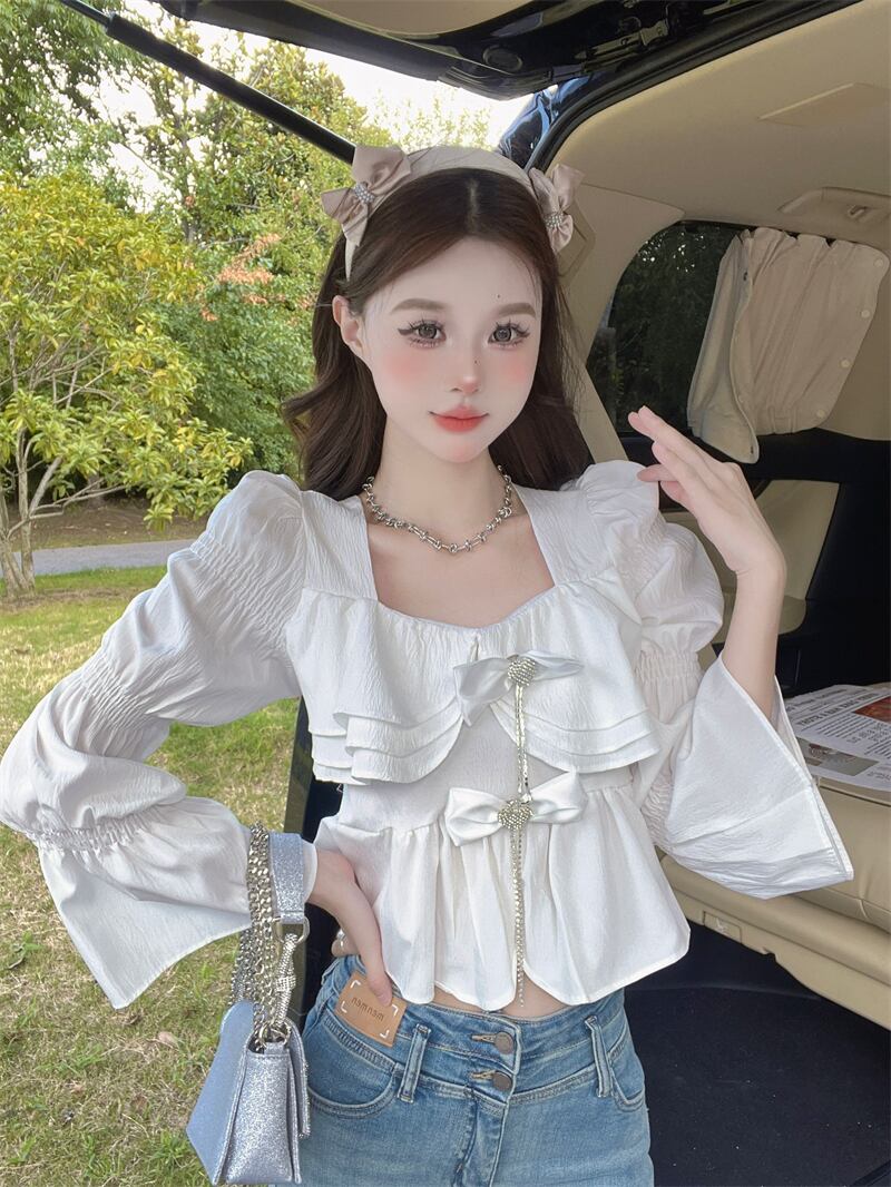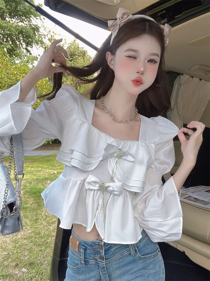 フレンチスタイル甘いホットガールシャツ秋多彩バブルスリーブフリルランタンスリーブシャツ服 大人ガーリー スウィート キュート カジュアル オータム 秋物