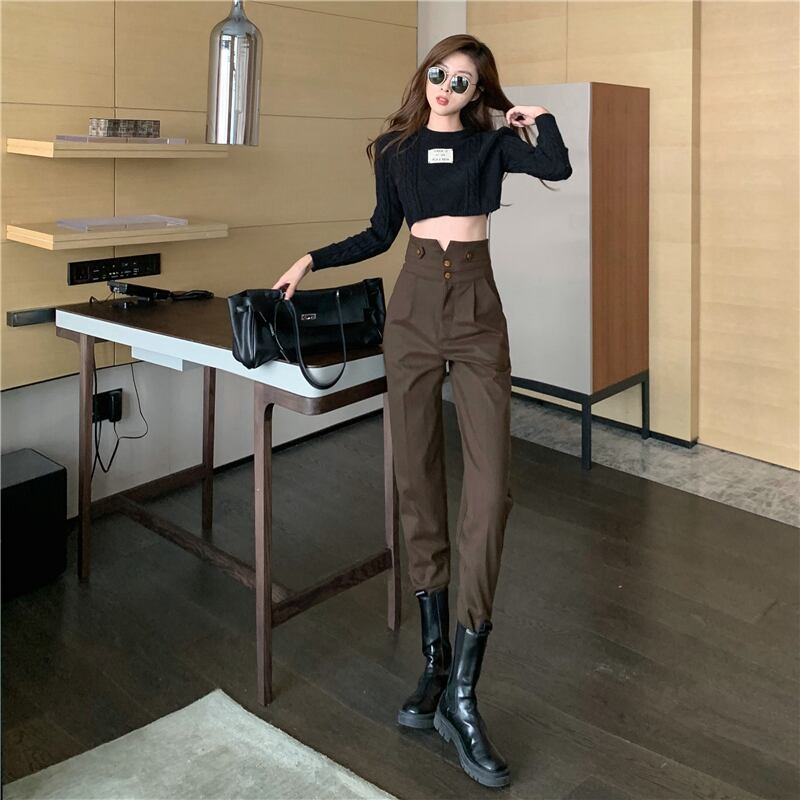 ホットガールウールパンツ秋と冬ウエスト多彩スーツパンツストレートレッグパンツ服 オータム 秋物 ウィンター 冬物
