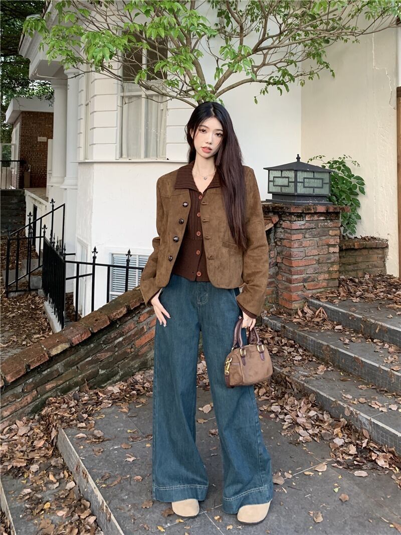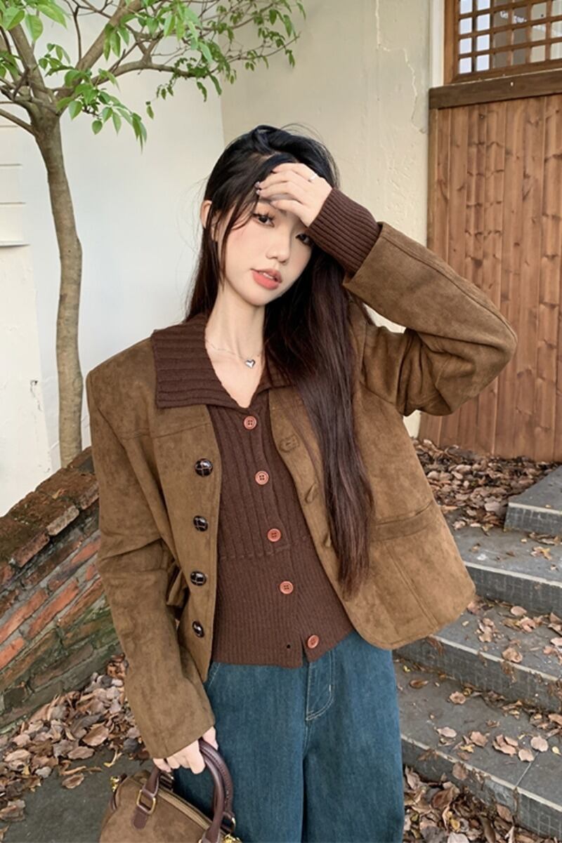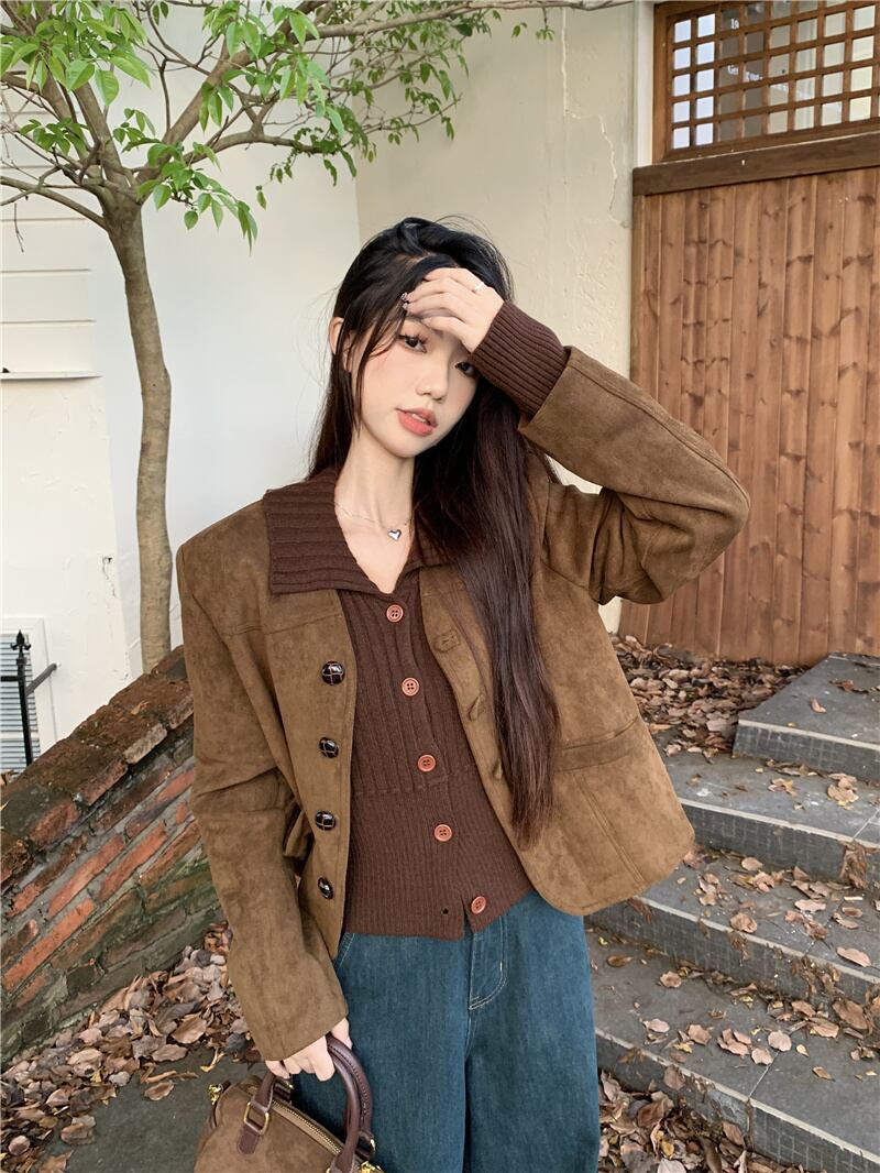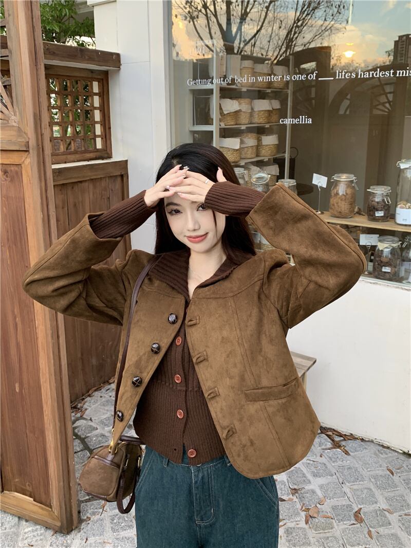 甘いホットガールメイラードスタイルスーツ秋ニットセーターカーディガンスエードジャケットツーピースセット服 スウェード 大人ガーリー スウィート キュート カジュアル オータム 秋物
